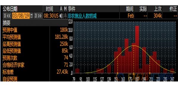 北京时间周五(3月8日),美国将于晚间21:30公布2019年2月非农就业报告。市场预计2月非农就业人口增加18.1万人左右,较1月大幅减少。不过只要该数据维持在15万人以上仍或将被视为强劲。