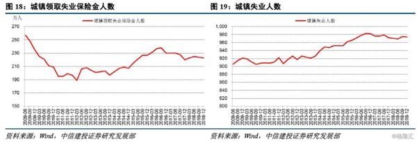 城镇失业人数与领取失业保险金人数。城镇失业人数为登记失业人数,而失业保险金也未覆盖全部劳动者,因此这两项指标可能低估了实际失业人数,其变化趋势可能更具参考意义。从近期走势看2018年下半年两项指标均有所回升。
