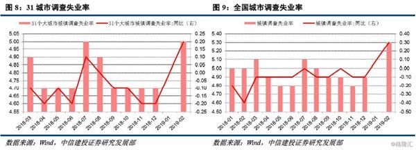 综合上述指标来看,当前就业压力较大。宏观指标方面,新增城镇就业人数自2018年8月之后趋弱,2019年1-2月为174万,较2018年同期下降;2月末调查失业率上升明显;居民收入增速尤其是工资性收入增速回落。微观指标方面,CIER指数与BCI企业招工前瞻指数均显著回落。考虑到就业滞后于经济增长,未来就业压力的缓解还需要经济增长的企稳。