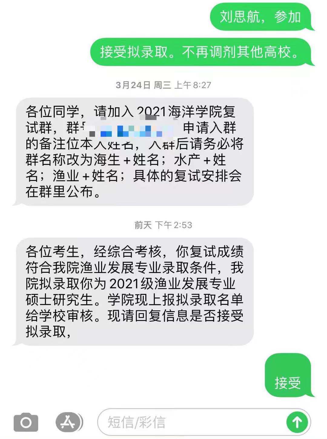 就这样,刘思航在工作期间完成了考研复试。收到录取通知信息的那一刻,他觉得一切都在意料之中,原因在于他认为在备考时付出了更多,更有目标和决心,这也是他的底气所在。当谈起未来规划时,刘思航朴实而又简单地回答到,“要更加勤奋学习,力争考上博士,为自己的未来加分”。看的出来,刘思航心里存有更大的决心和抱负。