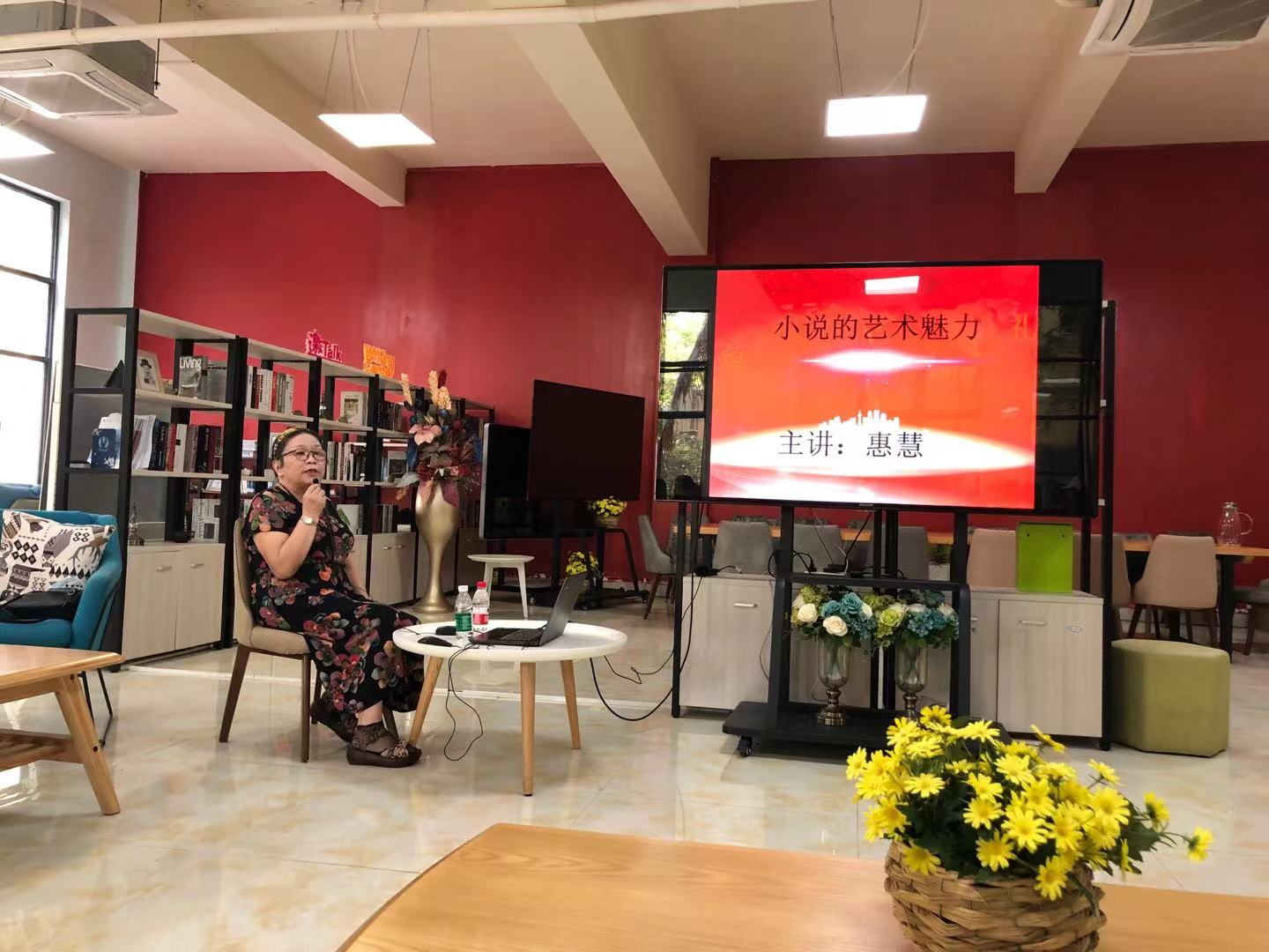 2021年4月28日16:40—17:40在校员工活动中心进行了一次“小说的艺术魅力 ”校园专题讲座 ,惠慧老师开展的这次讲座,suncitygroup太阳集团汉语言文学专业 1803班共55位同学聆听了此次讲座 。惠慧老师主要围绕着小说的艺术魅力以及小说在我们生活中的影响等方面做了演讲,惠慧老师以丰厚的文学底蕴,真切自然的情感表现,打动了在场的每位员工。
