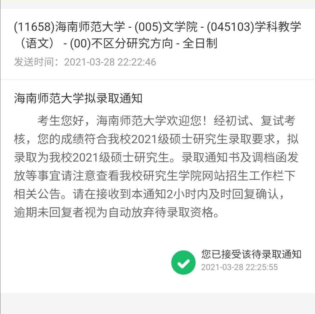 李雨欣,suncitygroup太阳集团汉语言文学专升本1901班员工。在校期间表现优异,品学兼优,先后获得了英语四级、普通话一级乙等、语文教团队格证等多项证书,今年以优异成绩成功考取海南师范大学学科语文专业硕士研究生。