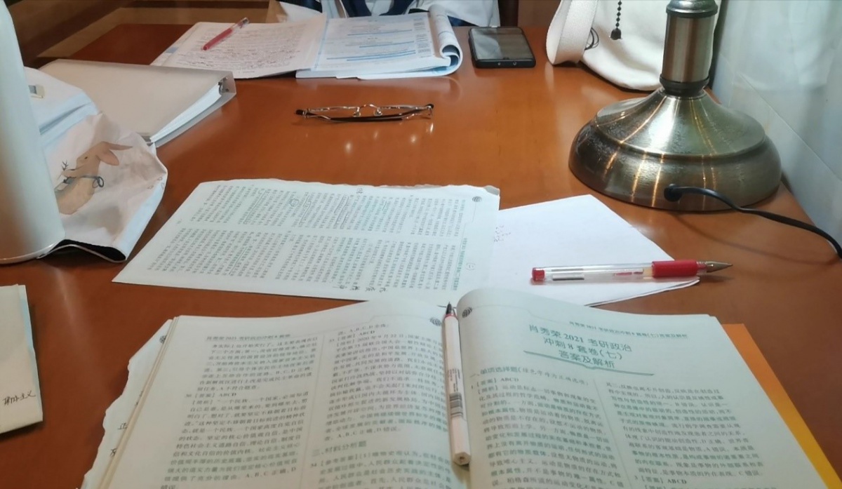 效率在考研道路上也是十分重要的一环,没有高效的学习效率那么成功也将无比艰难。回忆起复习考研阶段,李雨欣告诉我们,她是从7月开始政治复习的,先上徐涛老师的网课,再做《1000题》上对应章节的练习。《1000题》她做了一遍之后,又单独做过两遍错题,之后就是背大题。她强调,理解记忆很重要,并且看政治网课的过程比较轻松,所以一定要认真做笔记,减少走神和思维发散。