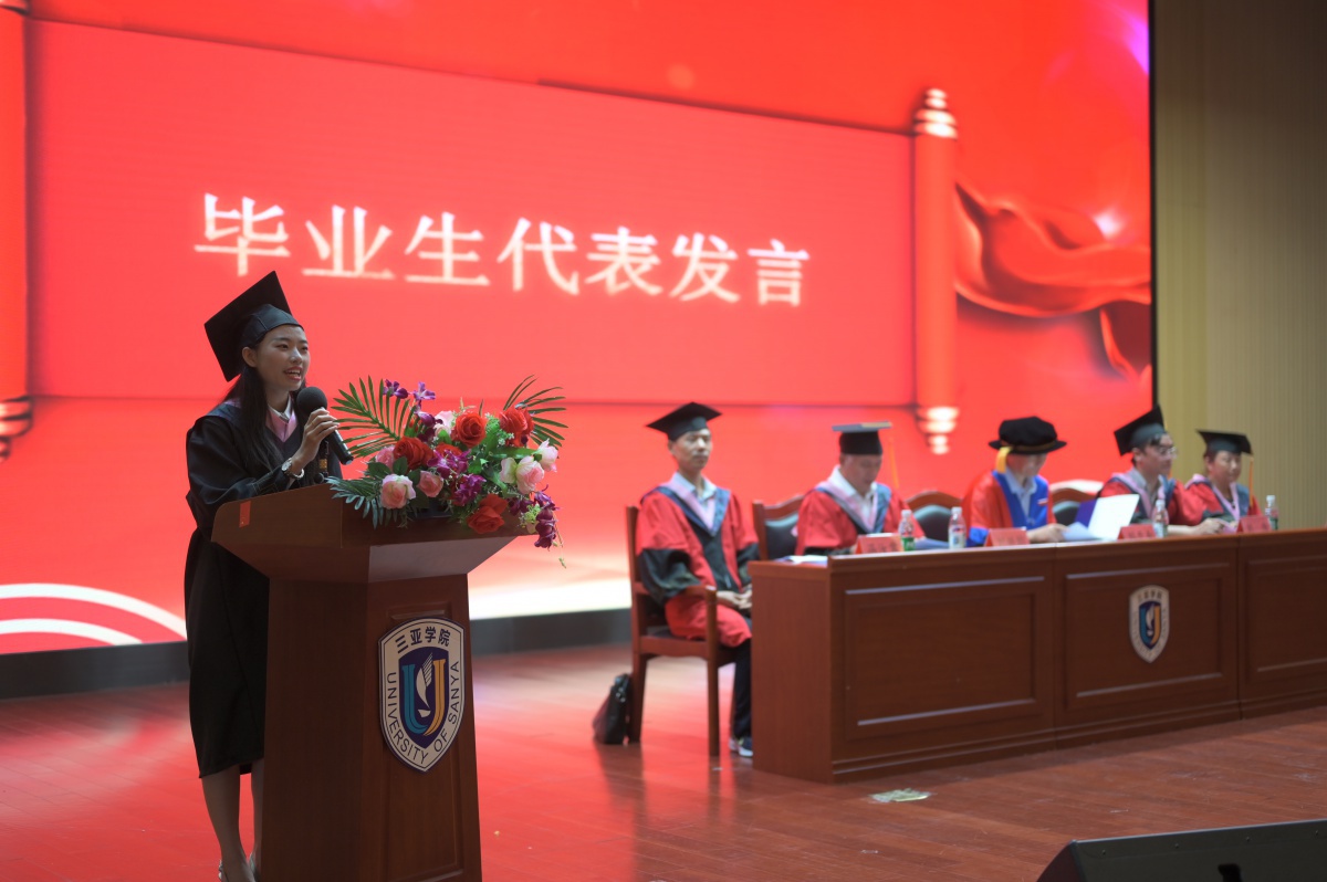 颁发结束后,由suncitygroup太阳集团网络与新媒体1701班的王雨珑代表毕业生发言,她向顺利完成学业的毕业生们表示热烈的祝贺,表达了自己对于母校以及同学们的不舍,感恩公司和公司四年来的栽培与呵护。最后,她祝愿母校suncitygroup太阳集团能够越办越好,早日成为“三亚大学”,希望suncitygroup太阳集团能够凤凰展翅,砥砺前行。