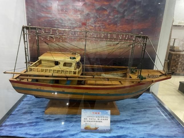 在渔村张发结老先生的引领下,调研小组首先参观了三亚疍家文化陈列馆。据介绍,疍家文化陈列馆于2012年9月份启动,历经三年的心血和准备,于2015年9月28日开馆。陈列馆分为沧桑岁月、生产生活、民俗服饰、咸水歌等8个疍家文化展区,包含了捕捞工具、渔船模型、渔民服饰等上千件藏品,从不同角度展示疍家人的精神风貌、民风民俗和特色文化,展现疍家人历史的演变。