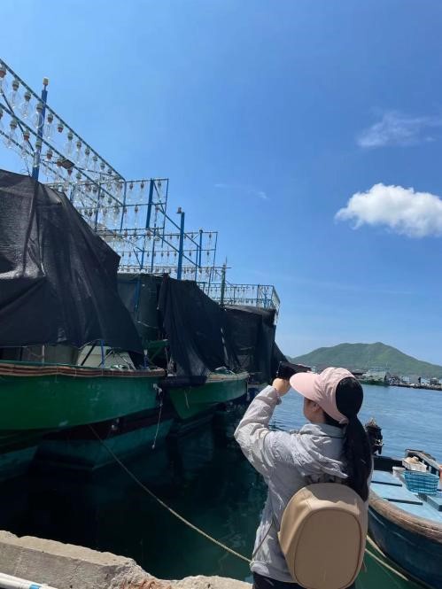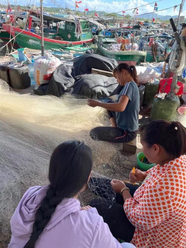 张玲老师到陵水新村码头实地调研,与老渔民座谈交流,了解渔村人民的文化信仰、生产生活。