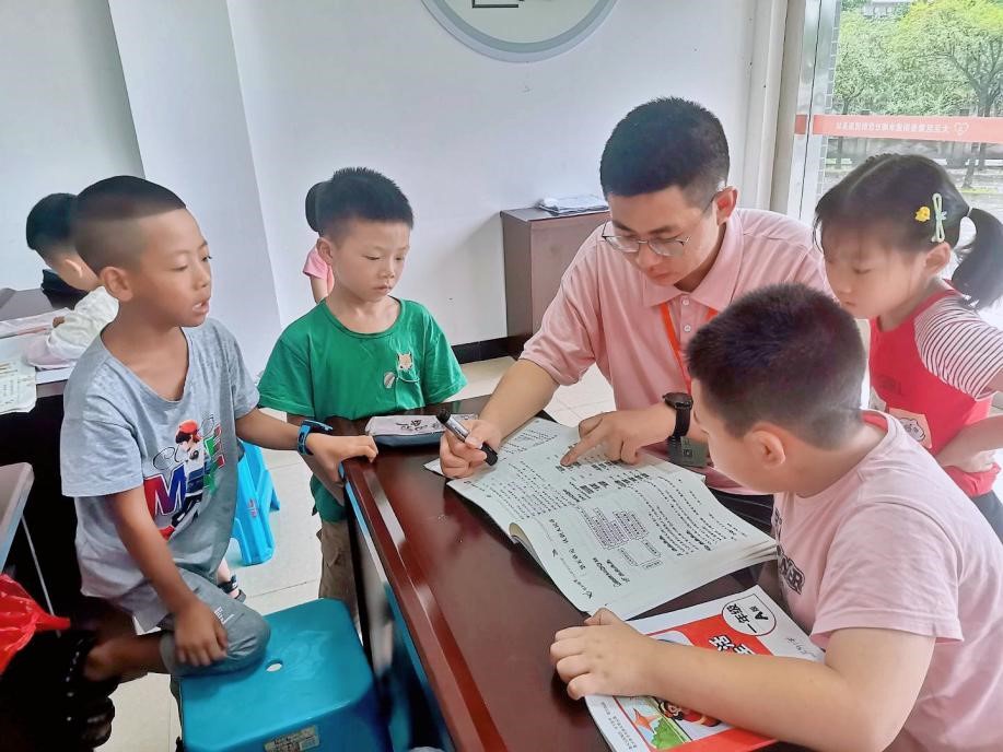 整个服务队有14名支教老师,他们是来自湖北、辽宁、重庆等地的高校员工,为孩子们提供较为全面的暑期教育需求。暑假班按照年龄段划分,从7月15日持续至8月15日,开设有艺术、社会科学、文化、体育等课程。我们每天都排好了课程表,上午主要是手工、美术、音乐、小实验、书法等兴趣班,下午主要是看着孩子们写作业、复习等。我们的支教活动也得到了社区党支部书记吕宏波同志的肯定。他说,志愿者的付出和陪伴,不仅丰富了孩子们的暑期生活,还能培养他们的兴趣爱好,不至于荒废这个假期,同时将安全隐患无形地消弭了。