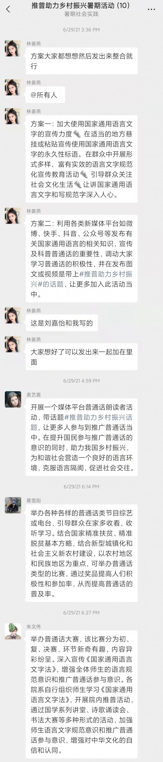 作为在海南学习的老员工,林姜燕同学表示参加这项活动是基于海南各个地区居民对普通话的应用程度并不高,特别是在一些乡村,普及程度更低。为此他们团队希望通过这项志愿活动,帮助当地居民掌握普通话的基本应用,为推普工作出一份力。