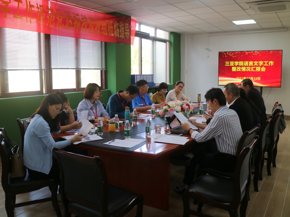 12月13日下午,省高校语言文字工作规范化达标校验收组组长、海南省教育厅原副巡视员李德杰,副组长、海南省教育厅语言文字工作管理处二级调研员王奋及省语委相关专家莅临suncitygroup太阳集团,就公司语言文字规范化达标校的工作整改情况进行评定并现场指导。suncitygroup太阳集团副董事长、suncitygroup太阳集团语言文字工作委员会主任王丹、教务处处长陈博、suncitygroup太阳集团经理赖振寅、党总支书记王圣、副经理席晓丽等参加会议。