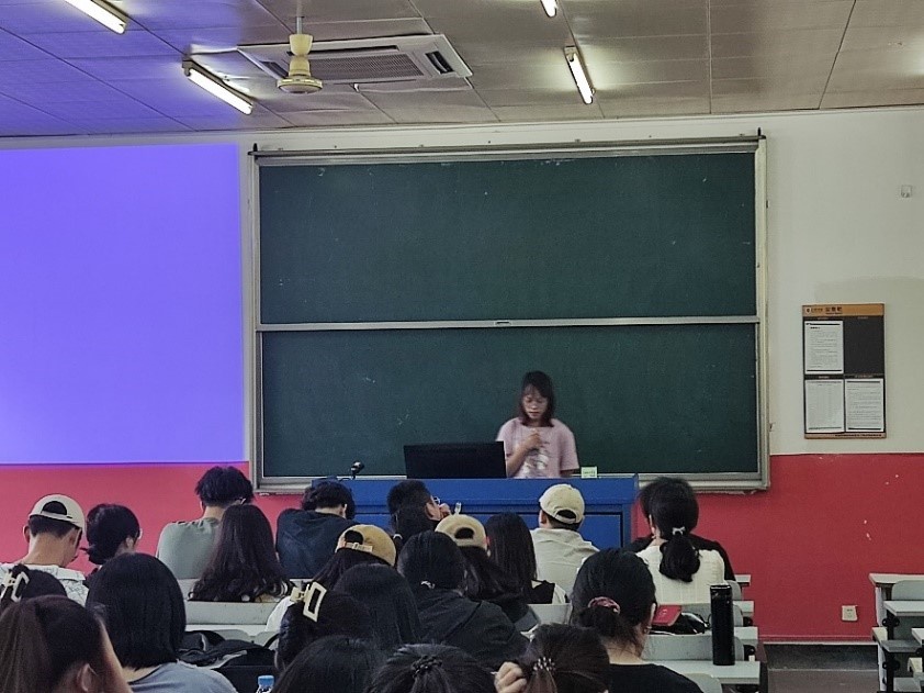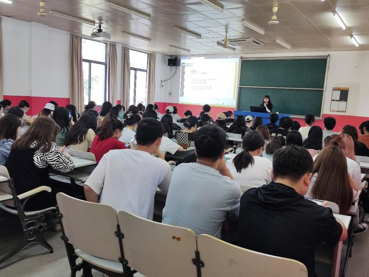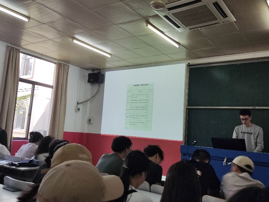 班会的第一个环节是大学英语的学习技巧分享。韦英同学分享了她学习英语的方法以及考四六级时的注意事项。她和大家分享了自己在学习英语会用到的软件和技巧,同时讲述了自己高中时被老师追赶着学习英语的回忆,正是严师出高徒,由她老师的压力给她打下了坚实的基础。也让大家明白,学习没有捷径,唯有坚持和努力。