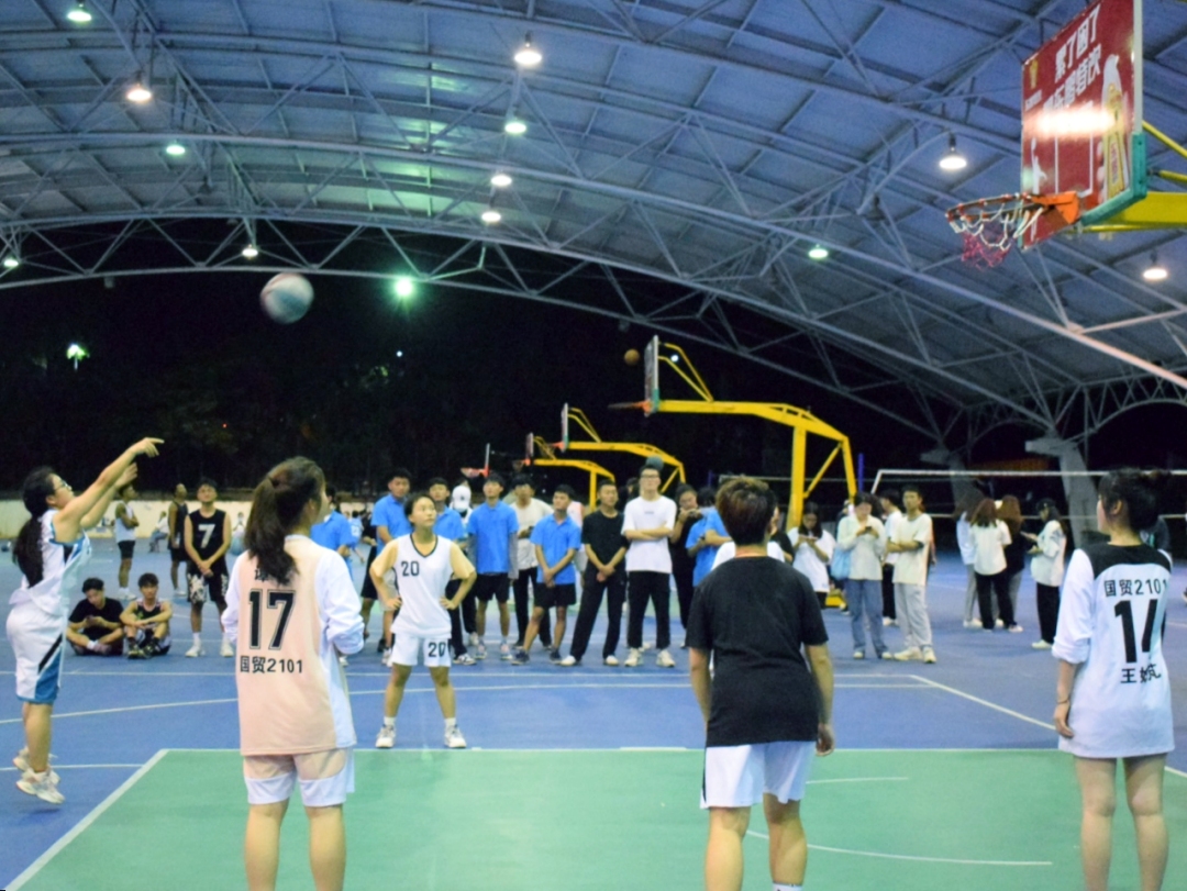 5月21日晚八点,体育欢乐节女子组篮球赛在风雨球场顺利举行,此次参赛的两支队伍是人文公司队和财经公司队。