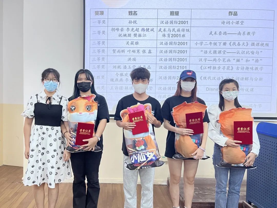 随后,教学比赛正式开始,十二位选手现场依次模拟课堂教学,他们惟妙惟肖、绘声绘色的教学俘获了现场观众的心。李浩等教师进行点评,指出了各位参赛选手教学的优点和不足。紧接着,评委老师依次为获奖选手颁奖。