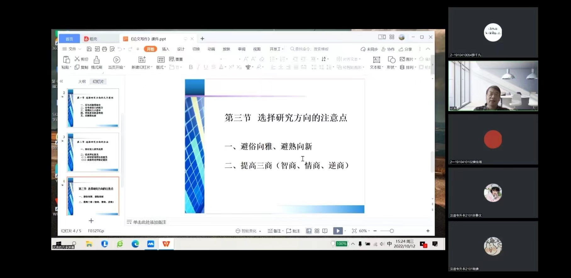 伏涛副教授就“毕业论文如何选题”开展线上交流讲座