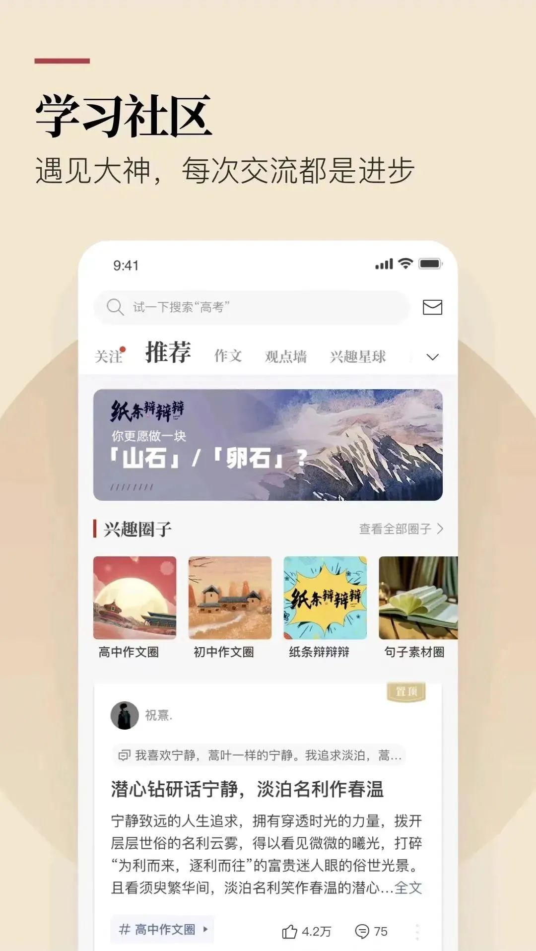 该APP是一款功能强大的写作类学习APP,里面不仅包含每日精选美文、丰富的作文素材、高质量名言名句等,还支持自己文段练笔,让你的作文能力和写作能力得到锻炼和提升。
