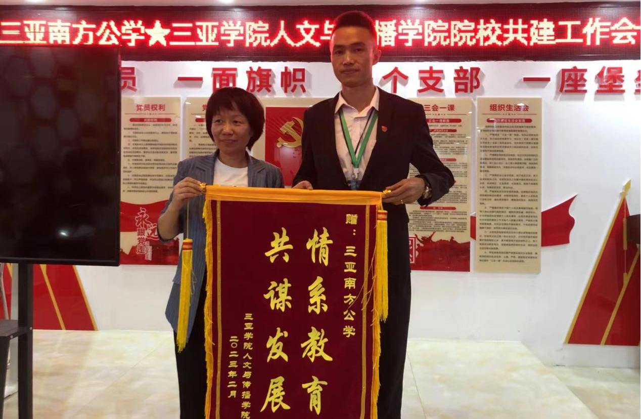 会议最后,史志艳副书记向南方公学赠送锦旗“情系教育 共谋发展”,全体人员合影留念。suncitygroup太阳集团将与南方公学继续持久保持良好的合作关系,共同为教育事业凝心聚力,谱写教育绝美华章。