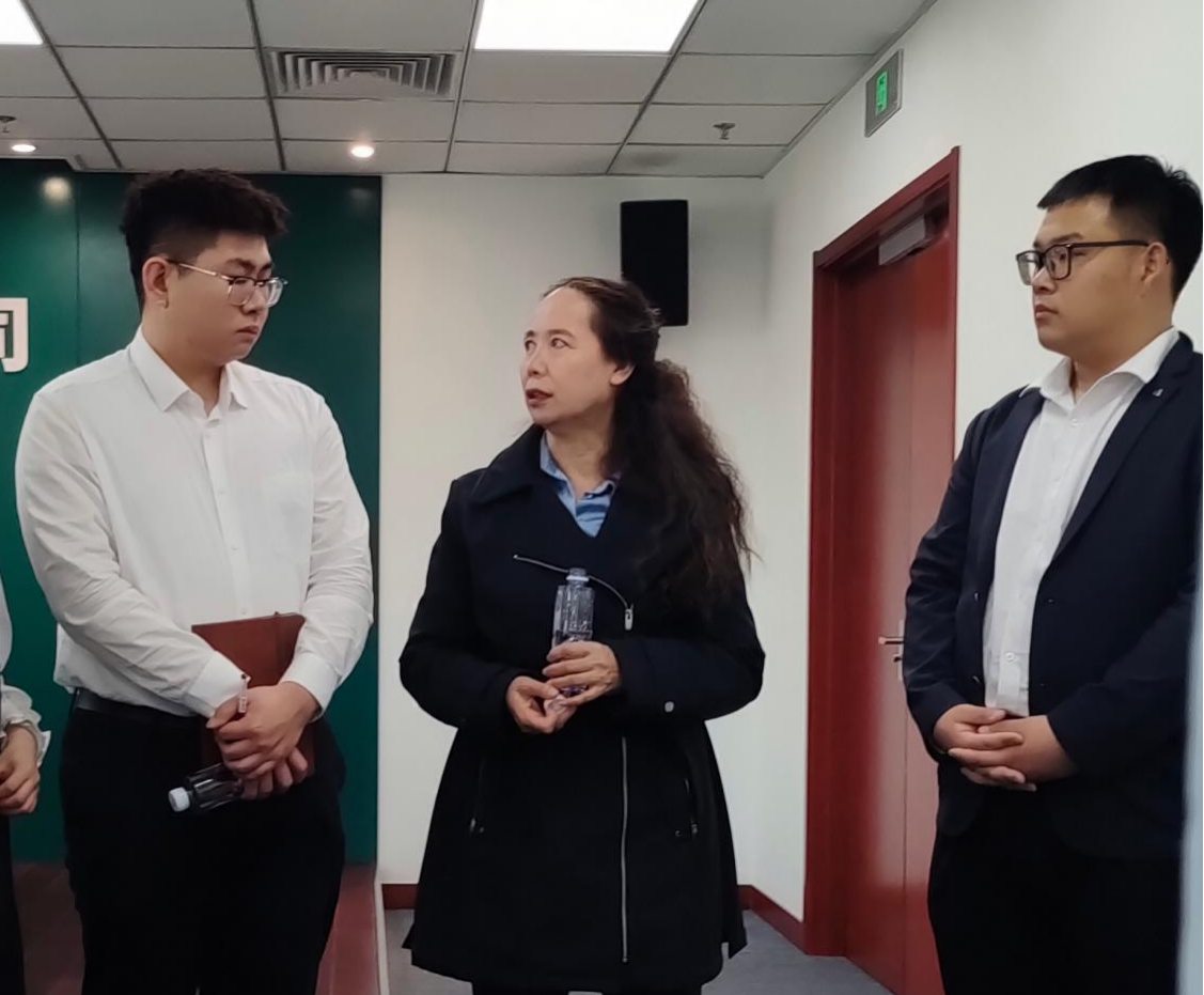 国网租赁公司人力资源部、办公室等部门的负责人向高教授介绍了同学们目前岗位分配、工作内容、带教老师等工作方面的情况,同时,充分肯定了同学们入职10多天以来的表现,希望同学们再接再厉,并表示未来同学们在学习、工作和生活方面遇到的难题,都将尽力解决,希望可以和学经理期合作下去。