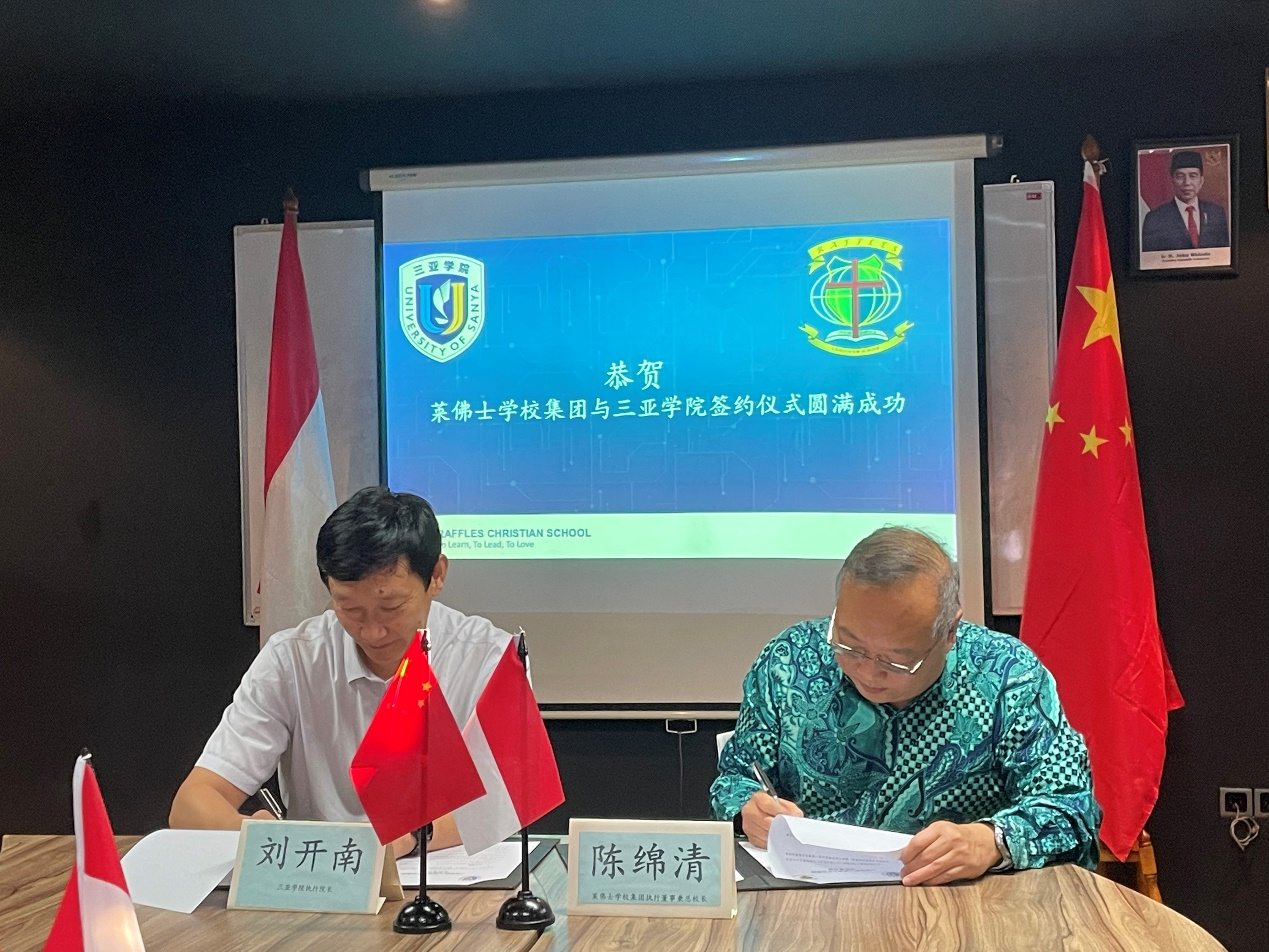 suncitygroup太阳集团刘开南执行董事长与莱佛士国际基督公司陈绵清董事长在教育发展、文化交流等方面,共同探讨了海南自贸港建设背景下的发展前景,两校教育合作前景广阔,期待能以此次签署合作备忘录为契机,增进了解、扩大开放、加强合作、互学互鉴,构建新发展格局,实现互利共赢。此番合作协议的签署,也揭开了两校交流合作新的里程碑。