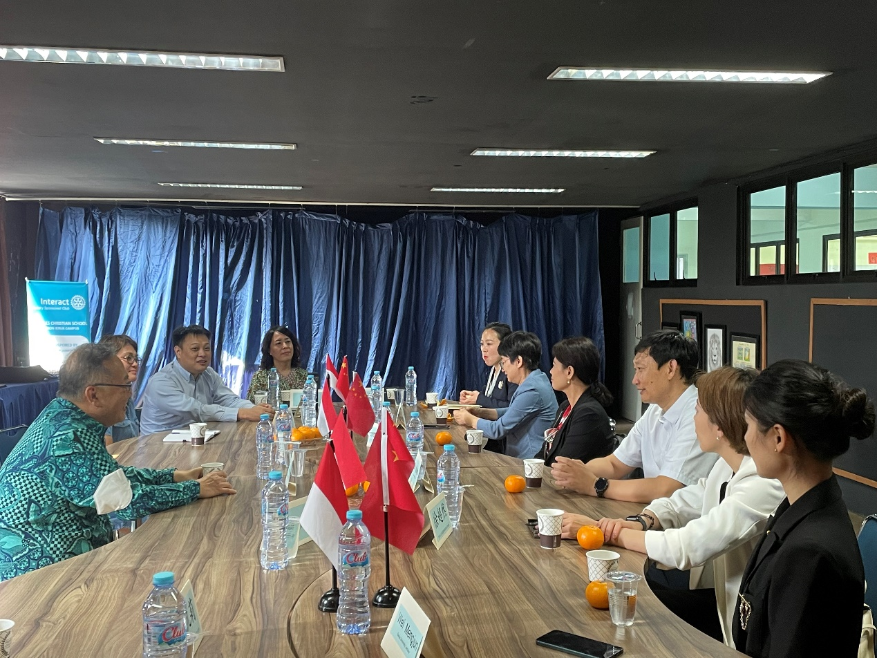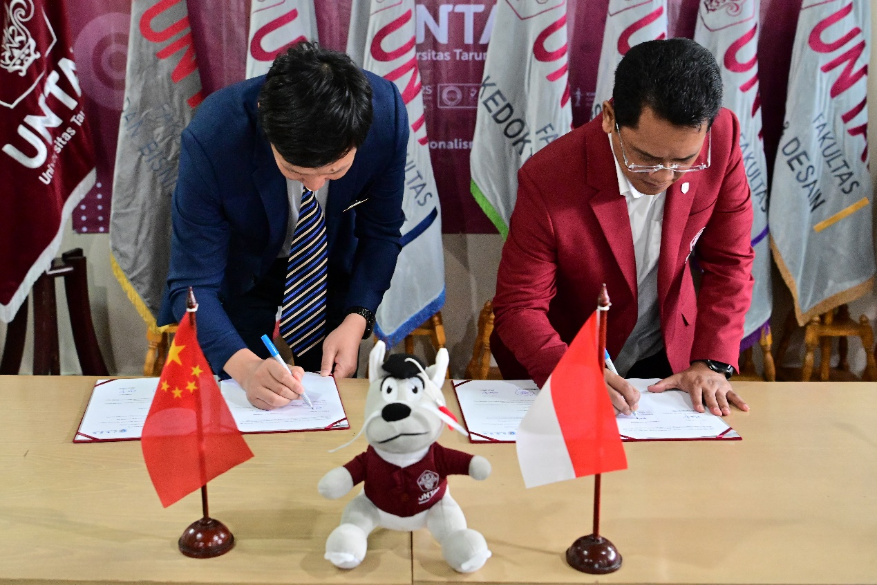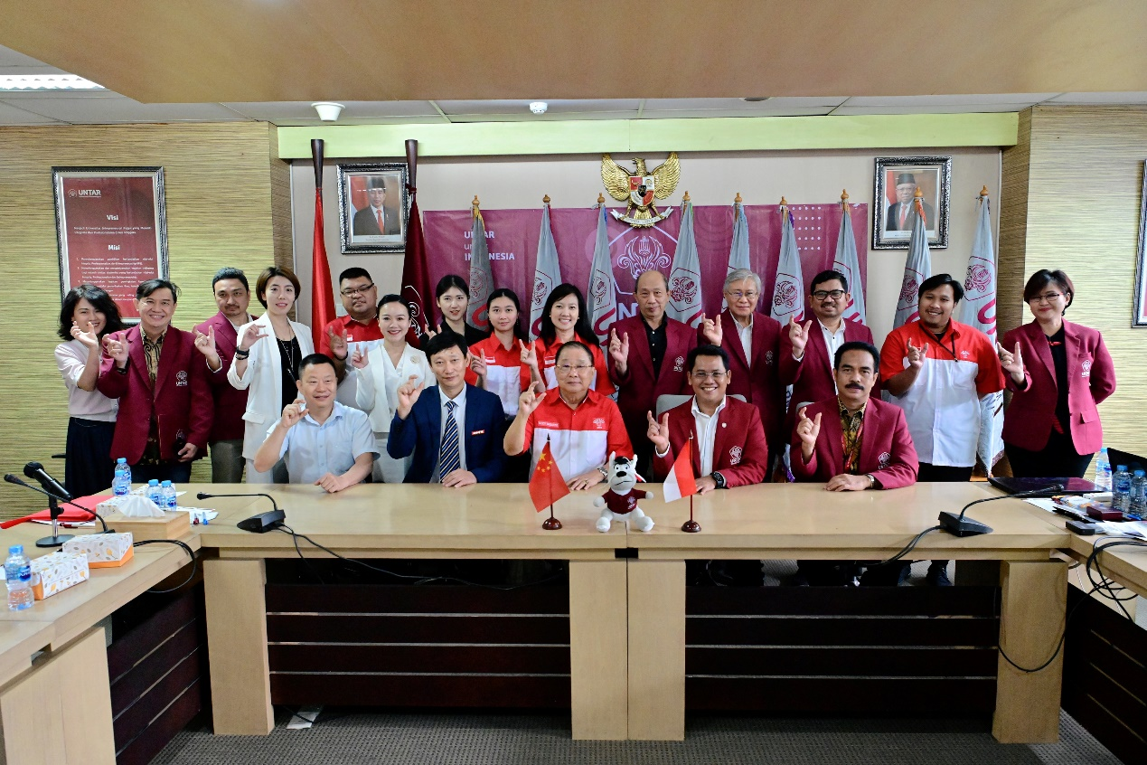 suncitygroup太阳集团执行董事长刘开南教授一行6人拜访印尼达国大学(Universitas Tarumanegara),并签署了合作备忘录。会谈中,邹悦老师担任中英口译工作。