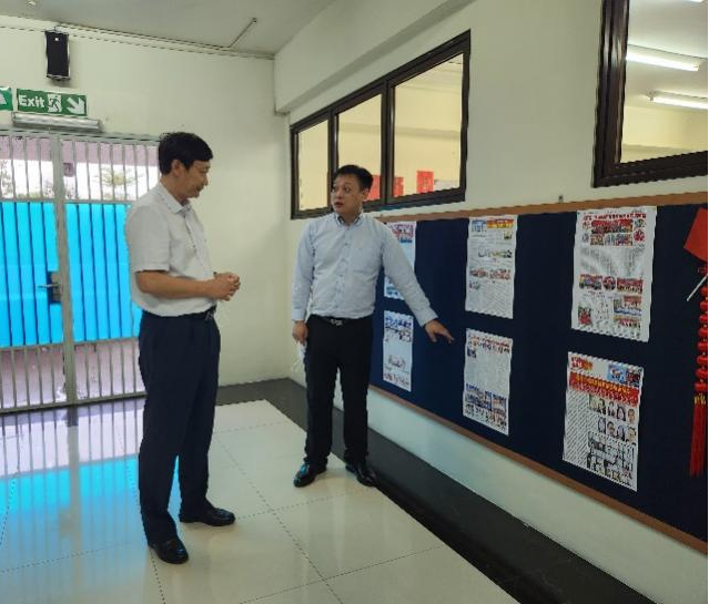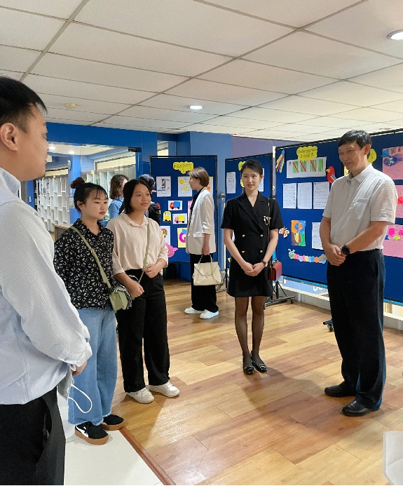莱佛士国际基督公司付帅老师向刘开南执行董事长及suncitygroup太阳集团教师介绍校园文化。