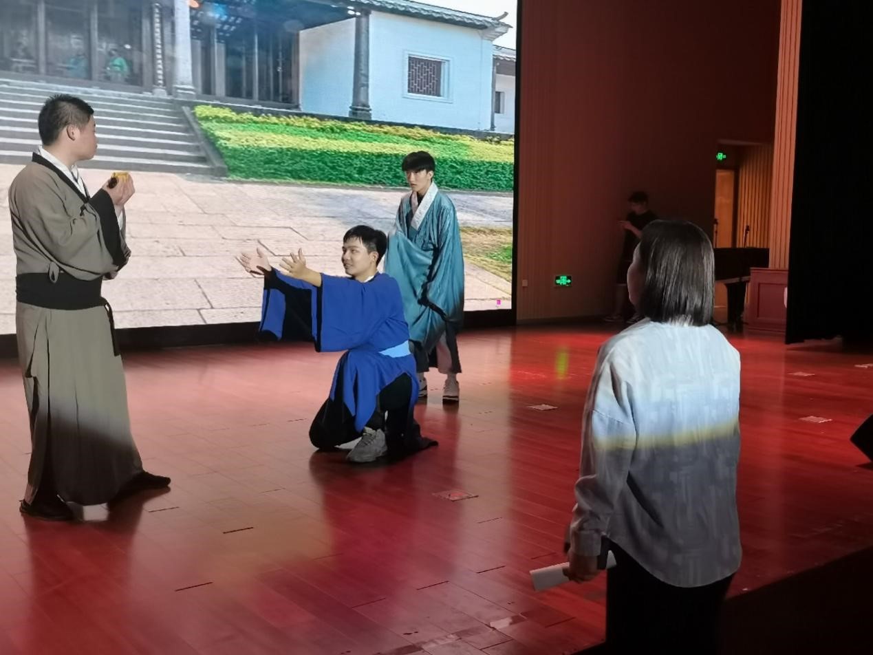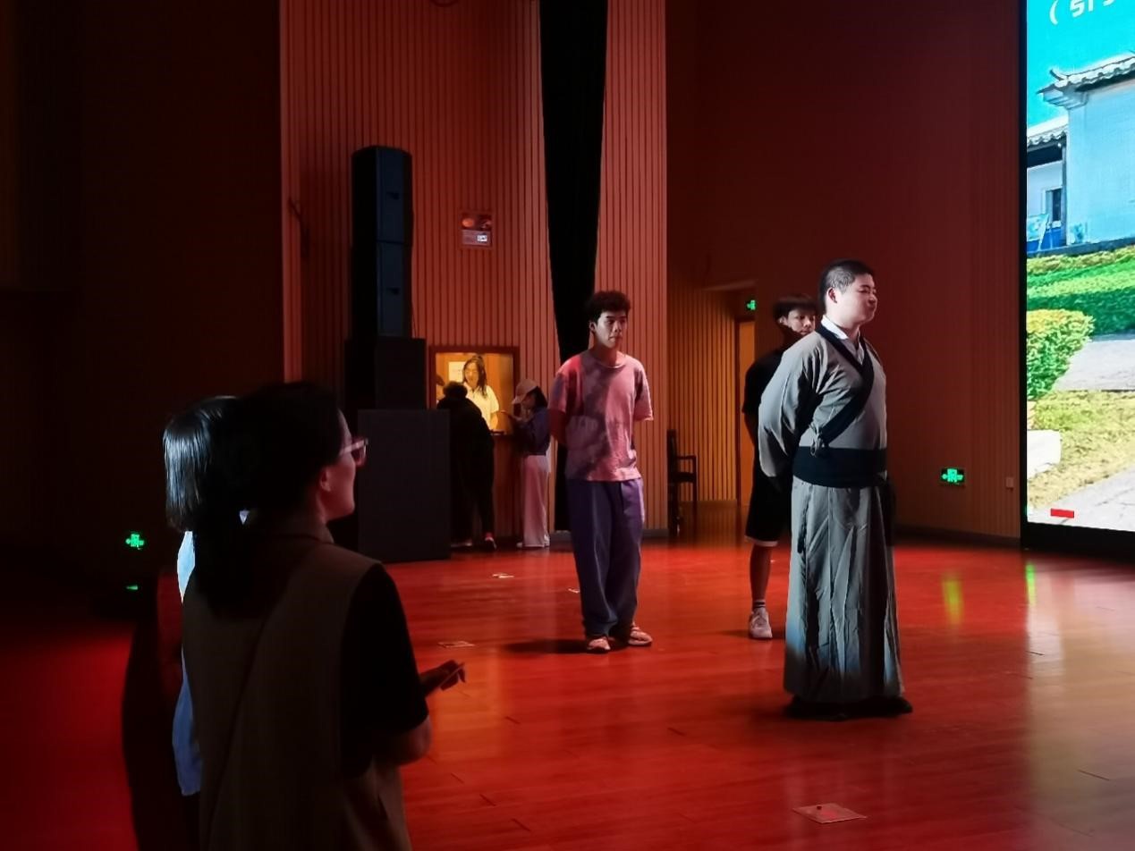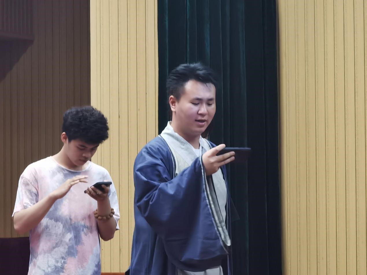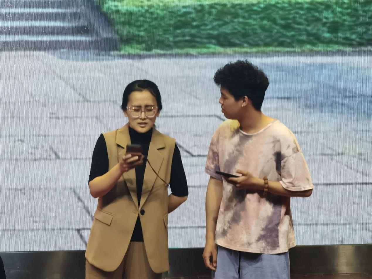 第一轮排练后老师们梳理了剧目章节之间的逻辑并进一步进行形体及台词方面的指导,以保证剧目的连贯性与代入感。演员们与老师之间相互交流,致力于让剧目更加精彩。针对重点剧情,大家一起进行反复研讨、改进,力争呈现出更好的舞台效果。在第二轮排练中,演员组同学们吸取经验,取长补短,展现出更加专业的演员风采。