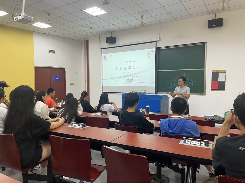 最后,由中心助理接景枫同学做总结。接同学感谢四位前任部长对中心做出的贡献,并以“靡不有初,鲜克有终”作为结语,希望同学们能在大学四年中坚持追寻文学,不断提升自我。新部竞聘大会在全体同学掌声下落幕,现场气氛活跃,程序进展顺利,取得圆满成功