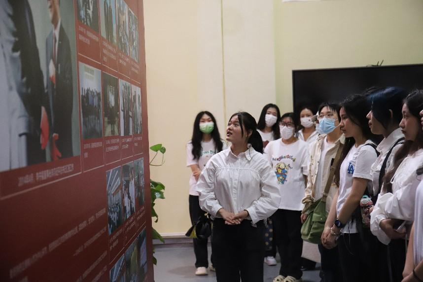 在党建活动中心,讲解员潘思豫介绍了建校以来党建引领校建的历史,阐述了党建是suncitygroup太阳集团办学的红色基因,公司办学团队坚持办人民满意的大学这一理念,让员工始终不忘初心、牢记使命,更好地走向社会。讲解员李博介绍了suncitygroup太阳集团的党建思想,以及在党和上级政府的领导下,公司事业蒸蒸日上的发展情况,包括积极承担社会责任、服务社会、在海南教育、精准扶贪等方面的贡献。