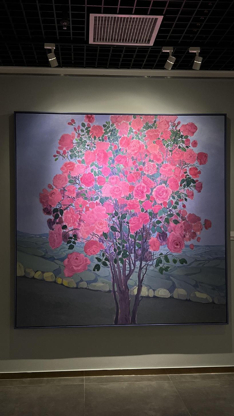 罗玉相:这次的玫瑰艺术展,我有幸观看了许多画作,它们陈列在画廊的各个位置,看到了艳丽的玫瑰、含苞待放的玫瑰、田野里初晨的玫瑰、带刀片的玫瑰、还有窗台无人问津的玫瑰……
