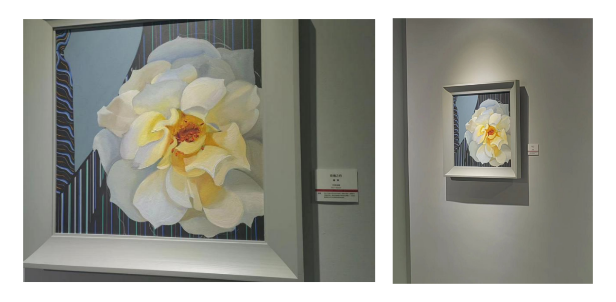 罗玉相这次的玫瑰艺术展,我有幸观看了许多画作,它们陈列在画廊的各个位置,看到了艳丽的玫瑰、含苞待放的玫瑰、田野里初晨的玫瑰、带刀片的玫瑰、还有窗台无人问津的玫瑰……
