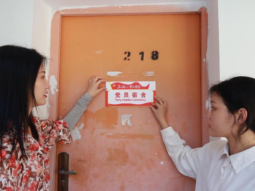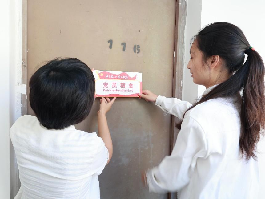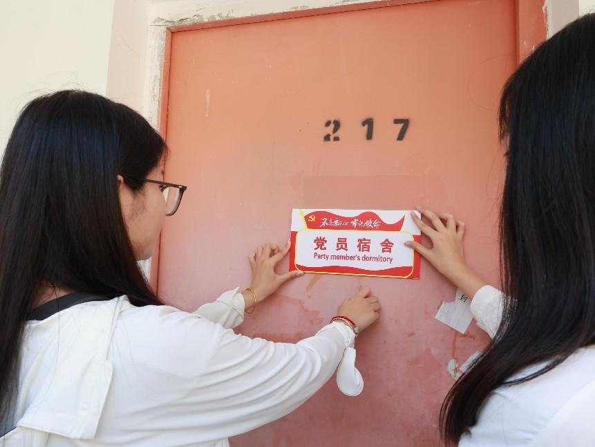 仪式上,史书记首先致辞。她说,党员宿舍标志牌不仅是对优秀党员的表扬,更是对全体党员以及全体同学发起的号召。这是为了号召大家将党员精神与品质融入到公司的校园文化中来,打造优秀宿舍。随后,陈鸿铭老师宣读了“党员寝室”名单,老师们一同为党员宿舍挂牌并合影留念。