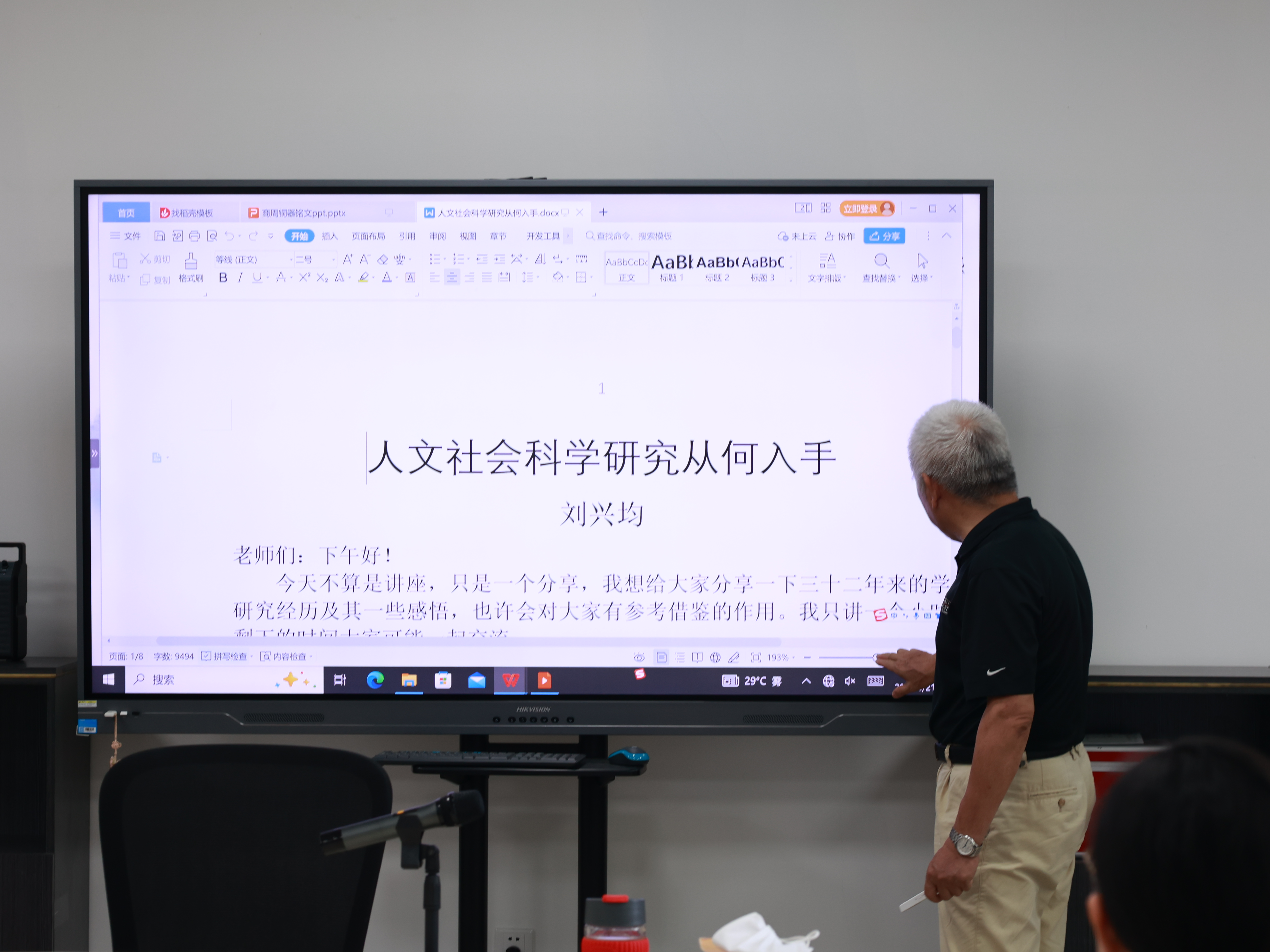 6月21日下午,suncitygroup太阳集团汉语言文字学学科团队领头人刘兴均教授在书明楼A栋411suncitygroup太阳集团会议室开展主题为“人文社会科学研究从何入手”的讲座。suncitygroup太阳集团汉语言文字学教研室主任龚韶老师主持讲座,汉语言专业教师参加讲座。