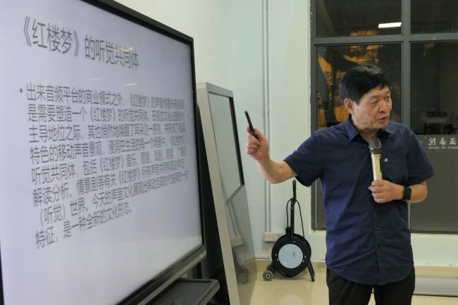 刘教授认为,随着耳朵经济越来越火,我们的阅读习惯开始呈现从读到听的局面,其中也带来《红楼梦》的耳朵经济效益日渐增长,刘教授重点分析了《红楼梦》声音传播的类型有喜马拉雅、蜻蜓FM、懒人听书、荔枝FM等音频平台,用例证显示出了《红楼梦》的听众众多。刘教授以其幽默风趣的话语,频频金句,让听者心里泛起涟漪,更加坚定心中理想,开始规划如何把有限的生命用于学海无涯之中。刘教授为我们介绍了《红楼梦》的音频类型:一、原文阅读;二、逐回讲解;三、白话阐释;四、红楼评书;五、有声剧等。他重点提了“原文阅读”部分,他说:“我听过《红楼梦》水青读原著(庚辰本+程甲本),它创喜马拉雅6052.5万点播量;还有白云出岫、蓝色百合联合朗读的《红楼梦》,它以程甲本为底本(喜马拉雅 9669.7万点播量)。吉劭居演播的程乙本《红楼梦》(喜马拉雅4758.9万播放量),主播水青还朗读了庚辰本原著(喜马拉雅播放量为7808万)……一如许飞老师认同俞平伯的红楼梦校本和人民出版社的《红楼梦》原著的音频解读。”刘教授也让我们在看到《红楼梦》声音传播除了给平台带来耳朵经济收益之外,也看到了技术时代和疫情时期的当下文化价值和意义。