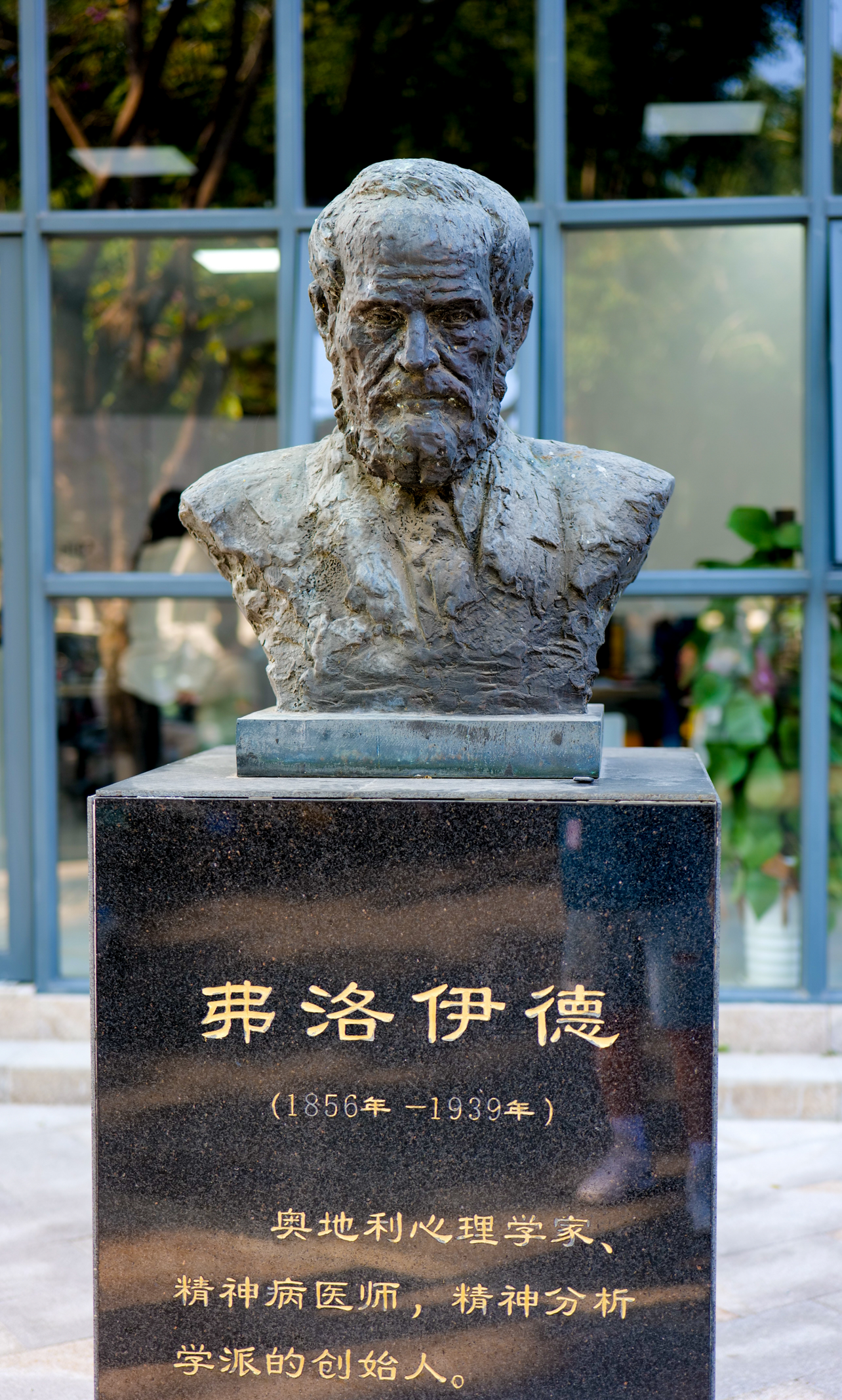 西格蒙德·弗洛伊德(1856年5月6日-1939年9月23日),奥地利精神病医师、心理学家、精神分析学派创始人。他于1895年正式提出精神分析的概念:1899年出版《梦的解析》,被认为是精神分析心理学正式形成:1919年成立国际精神分析学会,标志着精神分析学派最终形成:1930年被授予歌德奖:1936年成为英国皇家学会会员。他开创了潜意识研究的新领域,促进了动力心理学、人格心理学和变态心理学的发展,奠定了现代医学模式的新础,为20世纪西方人文学科提供了重要理论支柱。弗洛伊德半身像位于书行楼A栋门口.锡青铜制品,高约0.8米,重100千克,立于2014年12月31日。书行楼A栋原为公司健康人格工作室,旨在引导员工“愉快学习、自主成长”,培养员工形成健康人格和生涯发展的五种能力。
