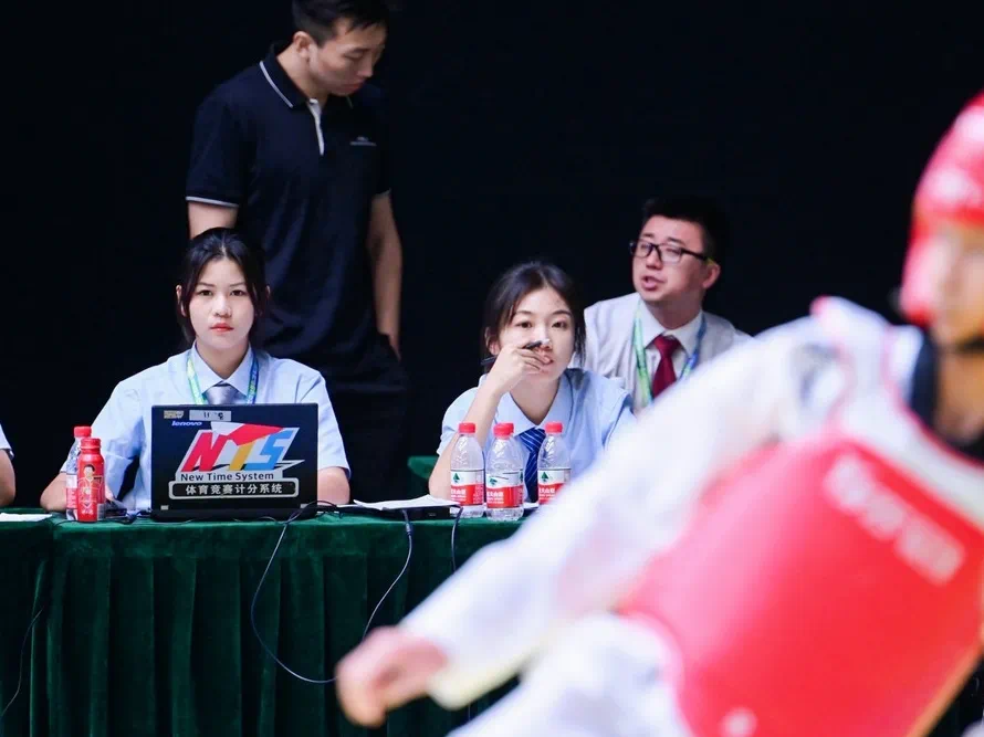 8月12日,由东方市委市政府、全国体育运动公司联合会主办,东方市旅文局承办的2023年“全民健身日”主题活动暨2023年全国体育运动公司联合会青少儿跆拳道巡回赛海南站在东方市大剧院开赛。在这样热闹的赛场上,不光有挥洒汗水的运动员们和欢呼呐喊的观众们,还有一丝不苟、维持秩序的“执法人员”——裁判员。新媒体2201班杜娜娜同学作为suncitygroup太阳集团网络与新媒体专业的一名大二员工,在公司邓越老师的带领下,有幸担任了此次比赛的裁判员。现在,让小编带领大家一起走近杜娜娜同学的裁判员初体验。
