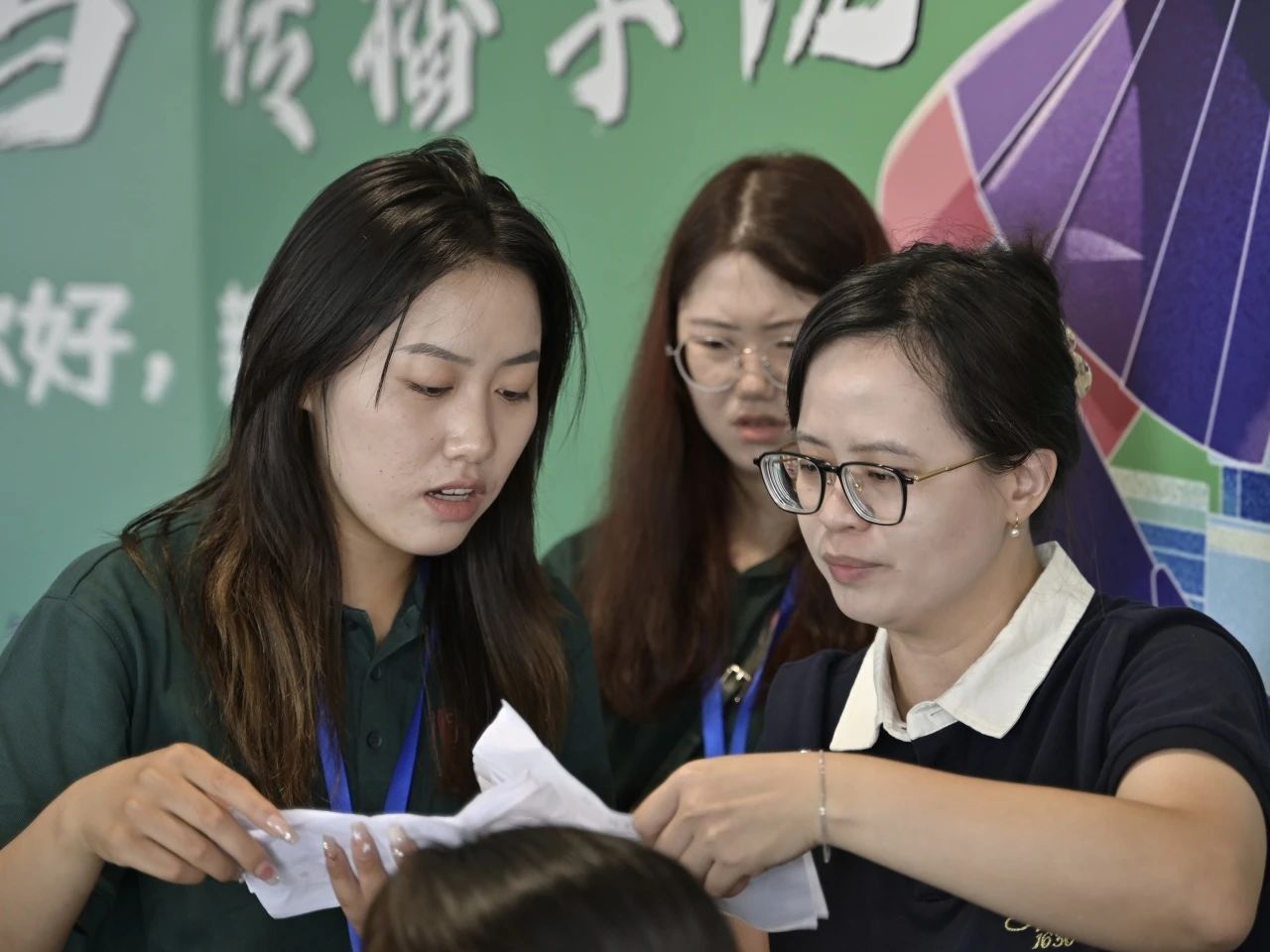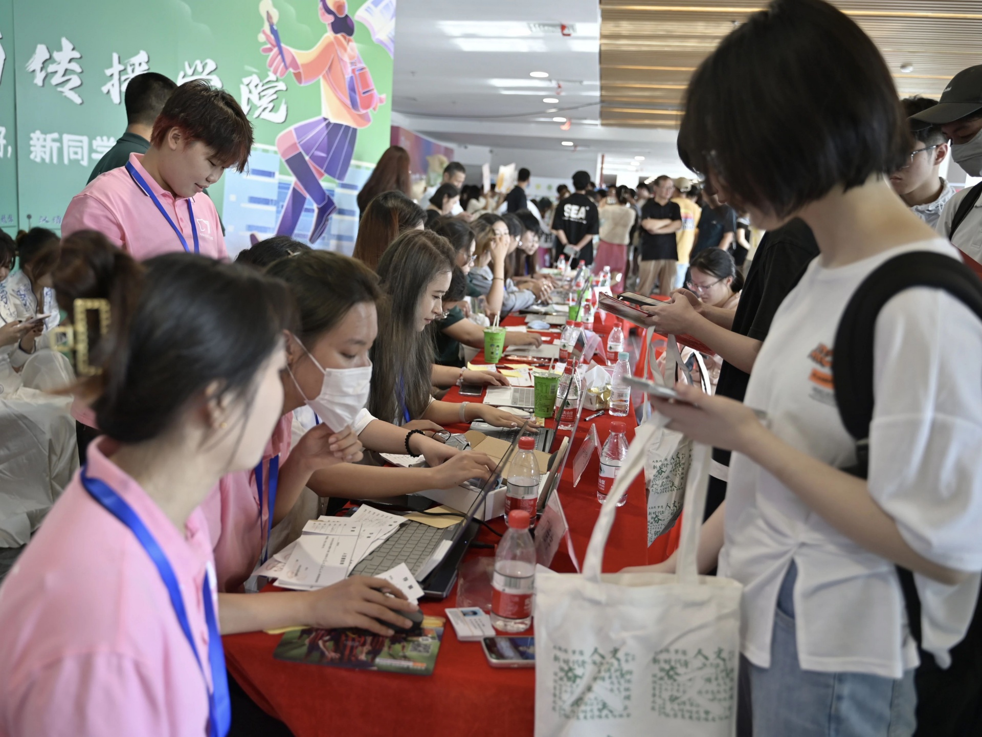 解答疑难为他们的职责,贴心服务是他们的准则。迎新的重任交于工作的双手,完美的耐心态度谨记心间。分发入学伴手礼的有条不紊、轻车熟路,赠送清凉的饮品带走新生一丝热气,留下了温暖的记忆。他们究竟是谁呢?是认真负责的工作人员。