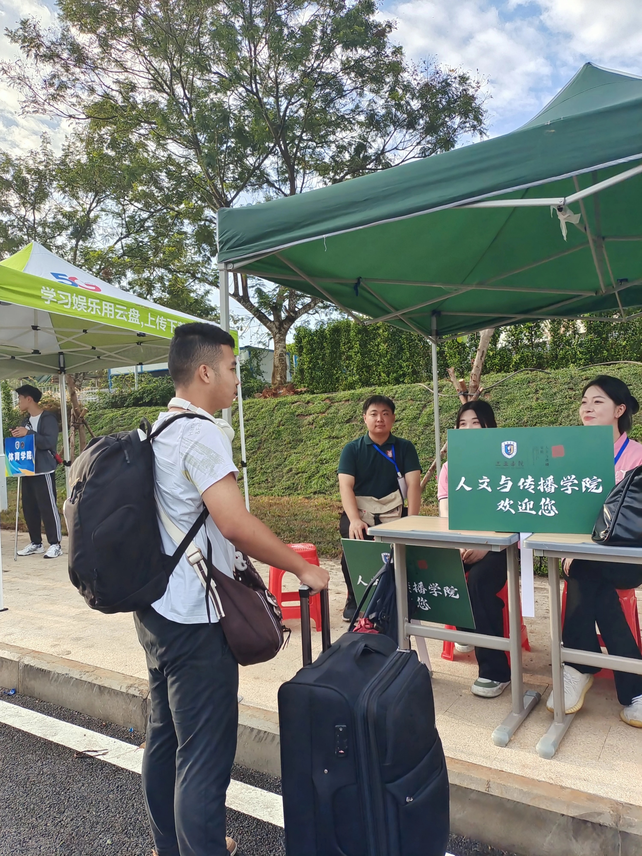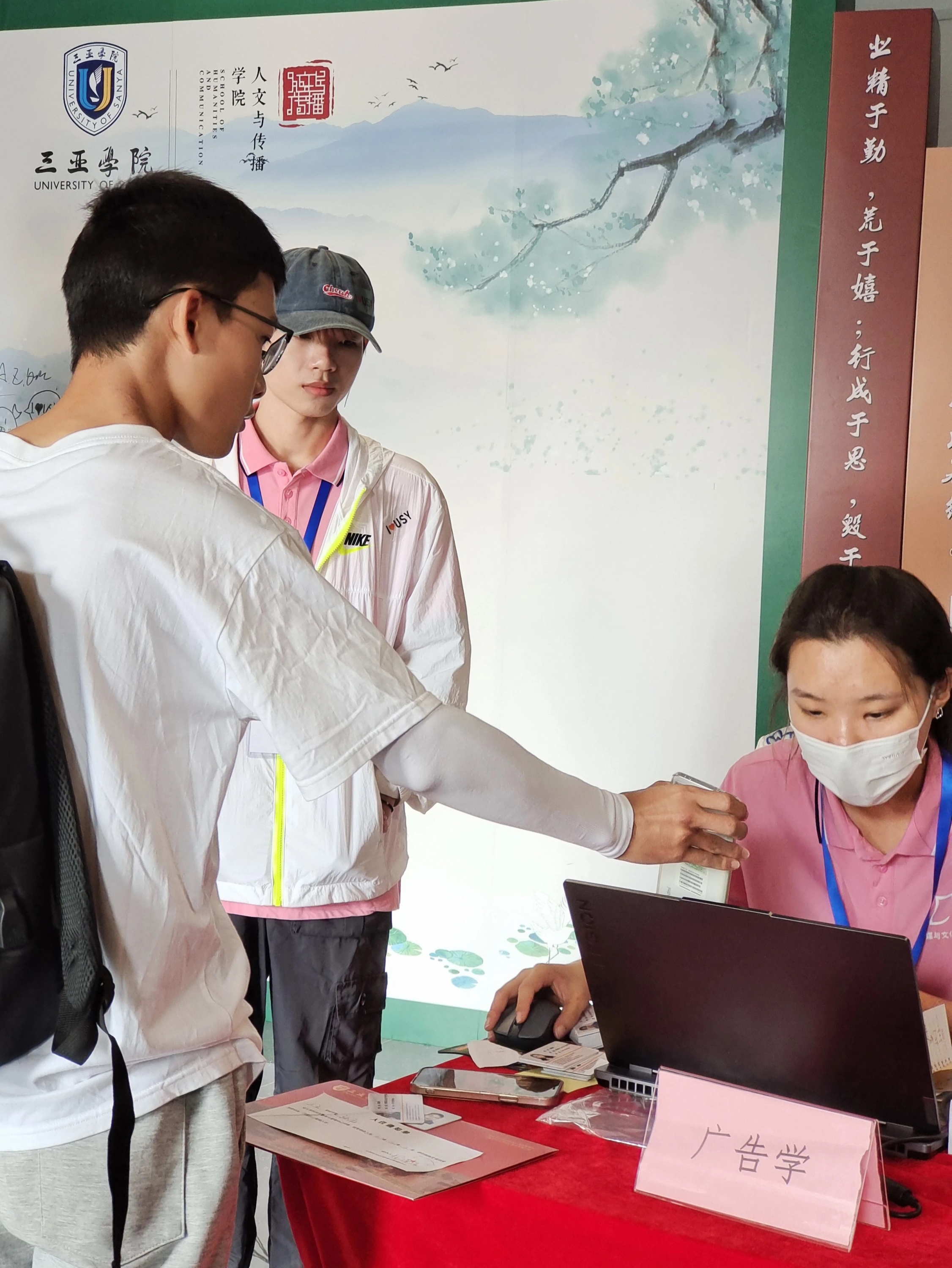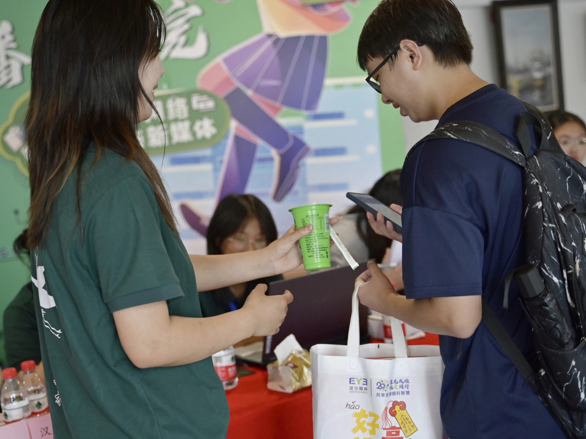 戴上工作牌,穿上工作服,翠绿色的身影穿梭在场内场外。解疑答惑,笑脸相迎,亲切的提示语传进每一位新生的耳畔,指引报到的顺利进程。手握拉杆找到行李的临时“居所”,眼观现场看管物品的短暂寄存。镜头之内,键盘上的手指不断翻飞,一张张新面孔已被录入档案;镜头之外,夏日的热浪不停翻涌,一杯杯冰饮品消除旅途的疲倦。