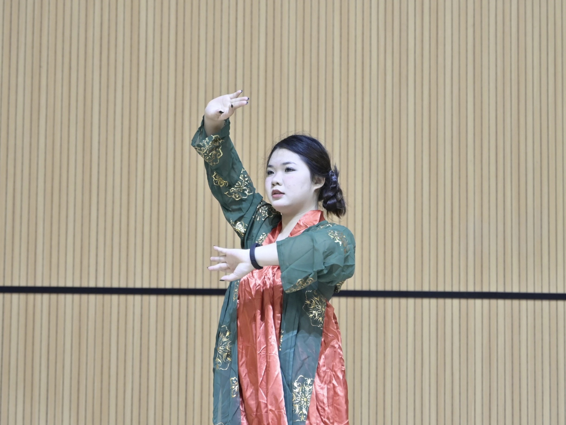 “一弹决破真珠囊,迸落金盘声断续。”素青的汉服,艳浓的唐装,一颦一笑,一静一动,素雅的风采勾起现场观众的惊叹。一曲《赤伶》凄凉的咿呀声与荧幕间的动画相呼应,将我们带入《将进酒》中饮酒狂欢的宴席,留下一路繁花。