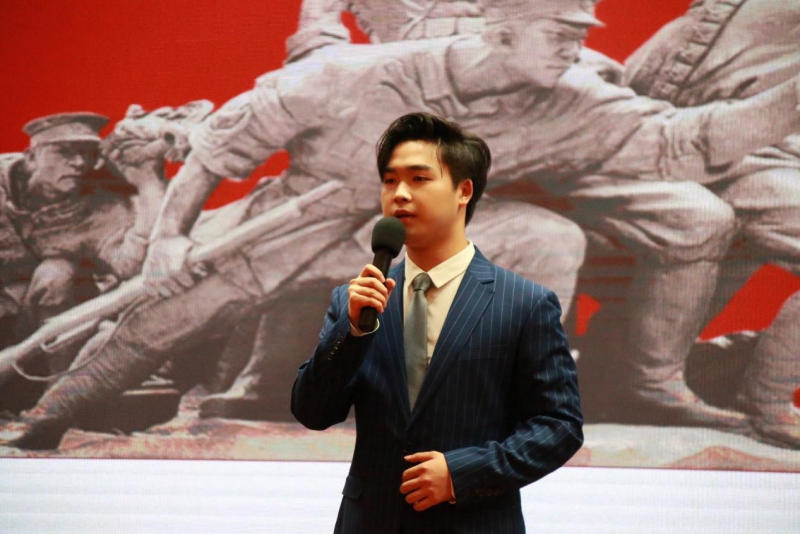 传媒与文化产业公司播音2201班的孙鹤源告白祖国:“现在是属于青年的中国,更应在党的领导下以“功成不必在我”的精神境界和“功成必定有我”的历史担当保持踔厉奋发的人生态度,接过前辈的接力棒,奋发向前。”