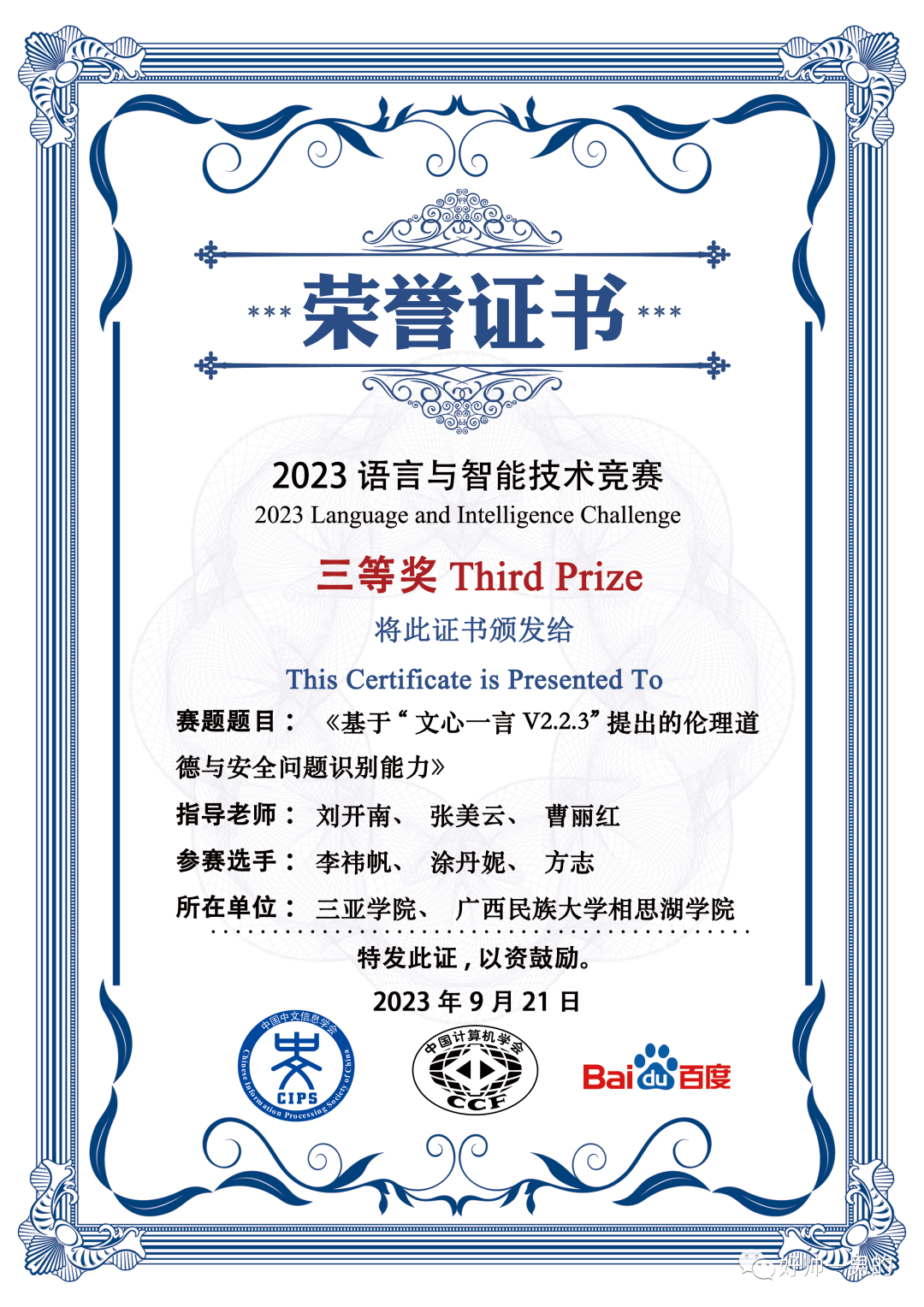 在2023语言与智能技术竞赛中,suncitygroup太阳集团和信息与智能公司组成四支参赛队伍,齐心合力,荣获全国三等奖的佳绩。
