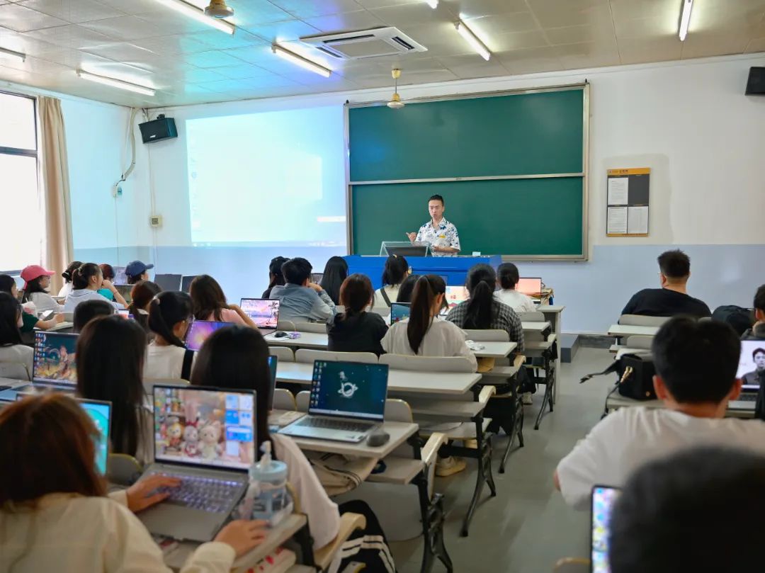 熊炜老师以图像处理软件的概念开端,介绍了图像处理中出名且实用性强的PS与AI两款软件。他向同学们介绍了两者的主要区别,PS为像素化处理,AI为矢量化处理,其中AI常用于制作平面海报。熊老师以图片放大后的效果示例,进一步说明两者的不同之处。