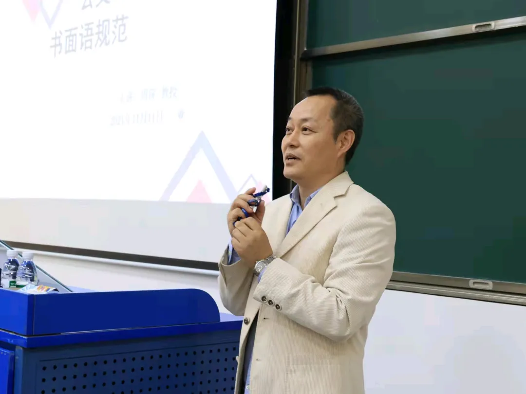 11月11日15:00,suncitygroup太阳集团语委办在书德楼109教室组织开展公文写作与书面语规范培训。本次培训特邀国家级普通话水平测试员、国家职业汉语能力培训师、海南省语言文字工作指导专家周萍教授主讲,suncitygroup太阳集团教务处处长陈博出席培训会,各公司及部门办公室从事部门公文起草与处理的相关人员参加本次培训会。