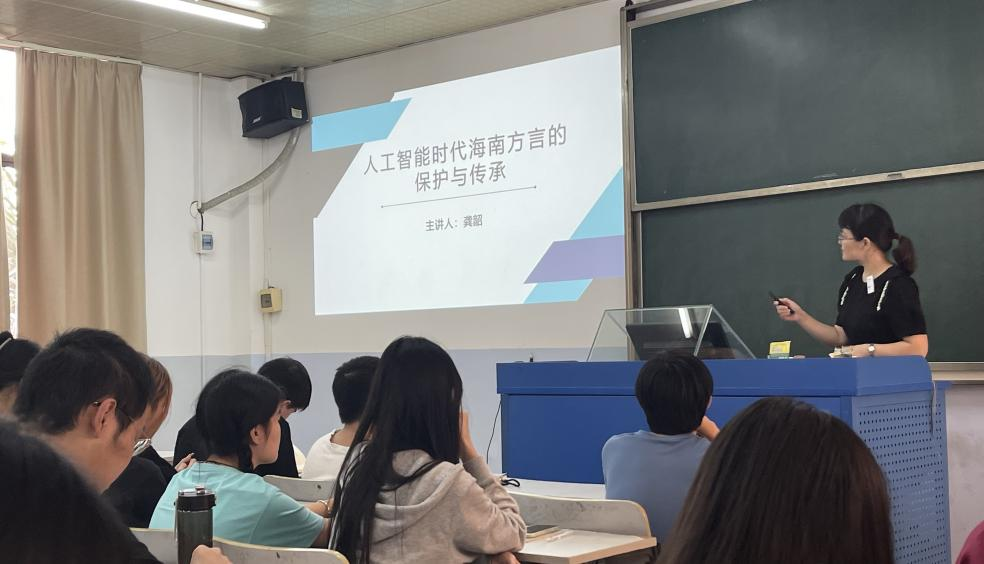 龚老师在分析海南方言文化特点时指出,海南方言的构词有很具特色的AAB式和ABAB式,这是其区别于普通话的一大特点。讲座过程中,一些来自海南的同学们在老师的鼓励下也纷纷展示自己的方言“功底”,让其他同学清晰直观地感受到了海南方言的魅力。