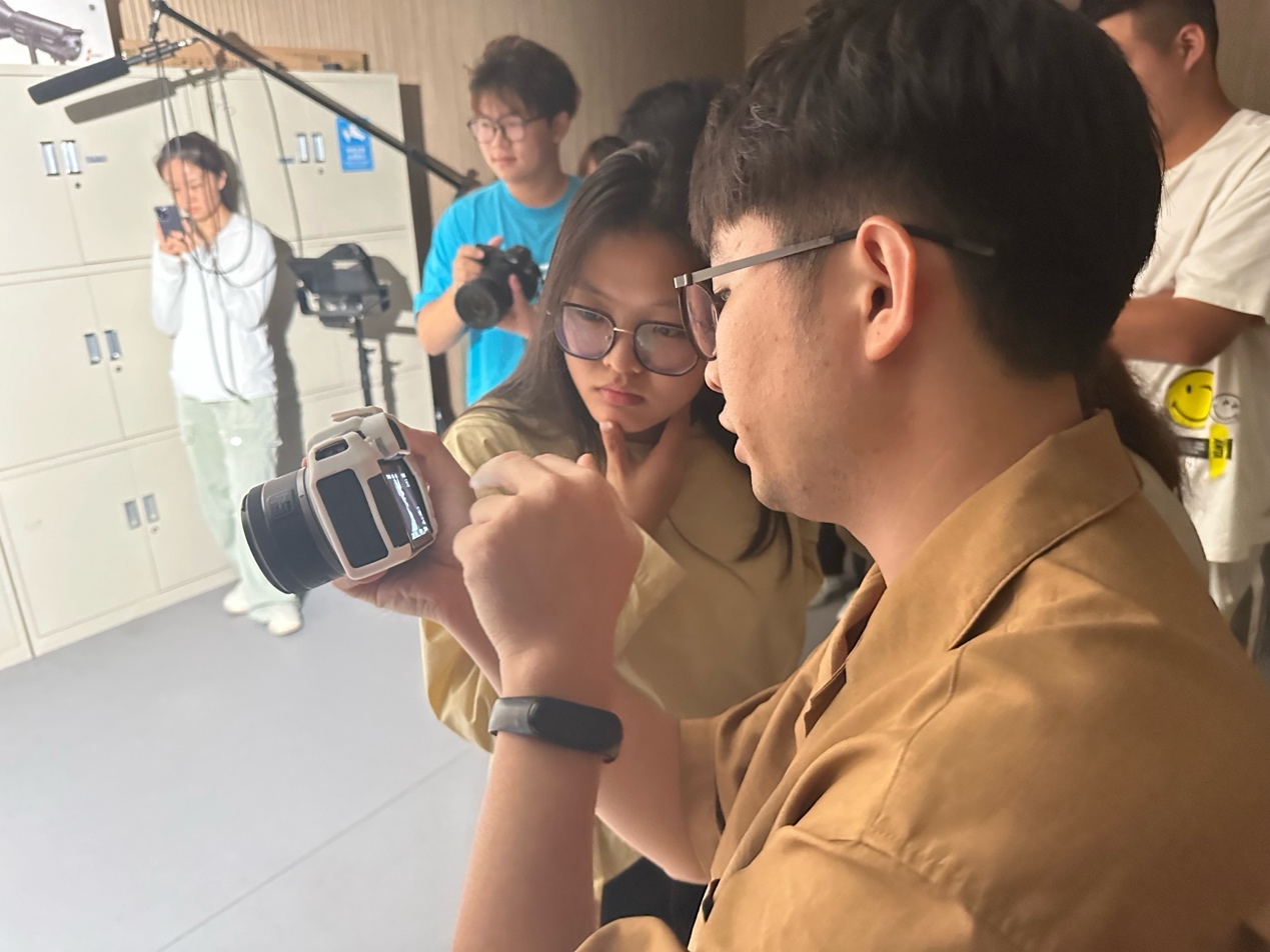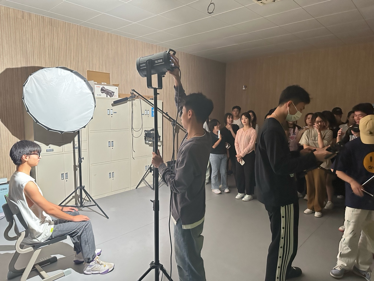 培训会的后半部分,陈文强老师带领同学们在实验室中进行摄影实践练习。他首先讲解了人像摄影的基本要领和技巧,如何调整合适的光线、选择合适的镜头、设置相机参数、捕捉人物的生动表情等。接着,同学们分成了几个小组,分别进行了实操练习。同学们亲自实践了人像摄影,学习如何控制光线和构图,以捕捉到更具表现力的人物照片。