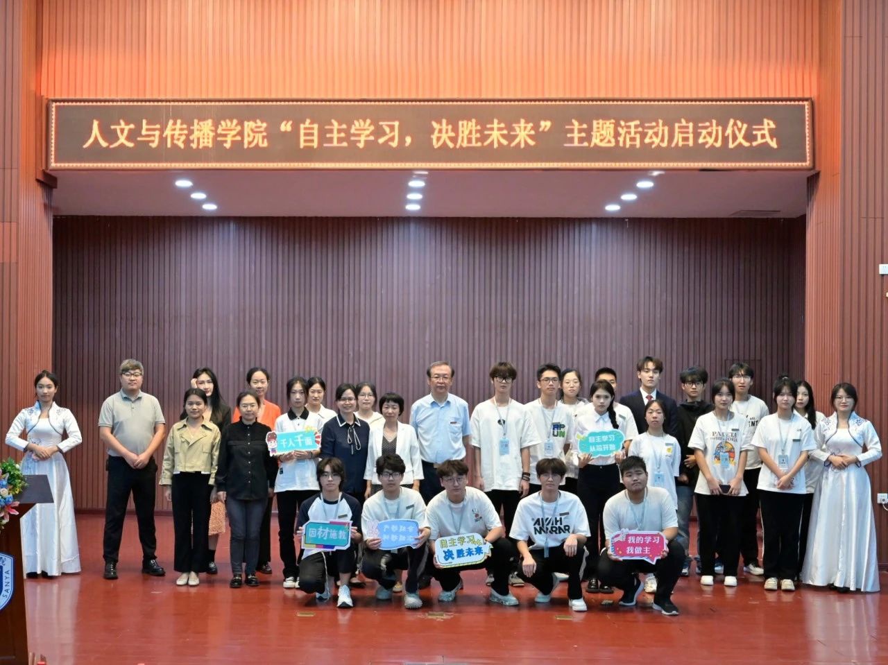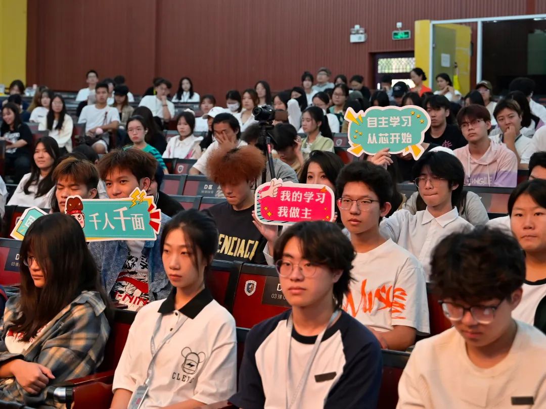 国家奖学金获得者新媒体2102的黄亚希同学结合个人学习经验,向同学们分享了自主学习的方法,强调个人规划和时间管理的重要性。播音2301班同学张嘉钰作为新生代表发言,表示将在学好专业课的同时,结合自身需求和兴趣选择学习内容和方式,提高知识水平和技能,提升自主学习能力。