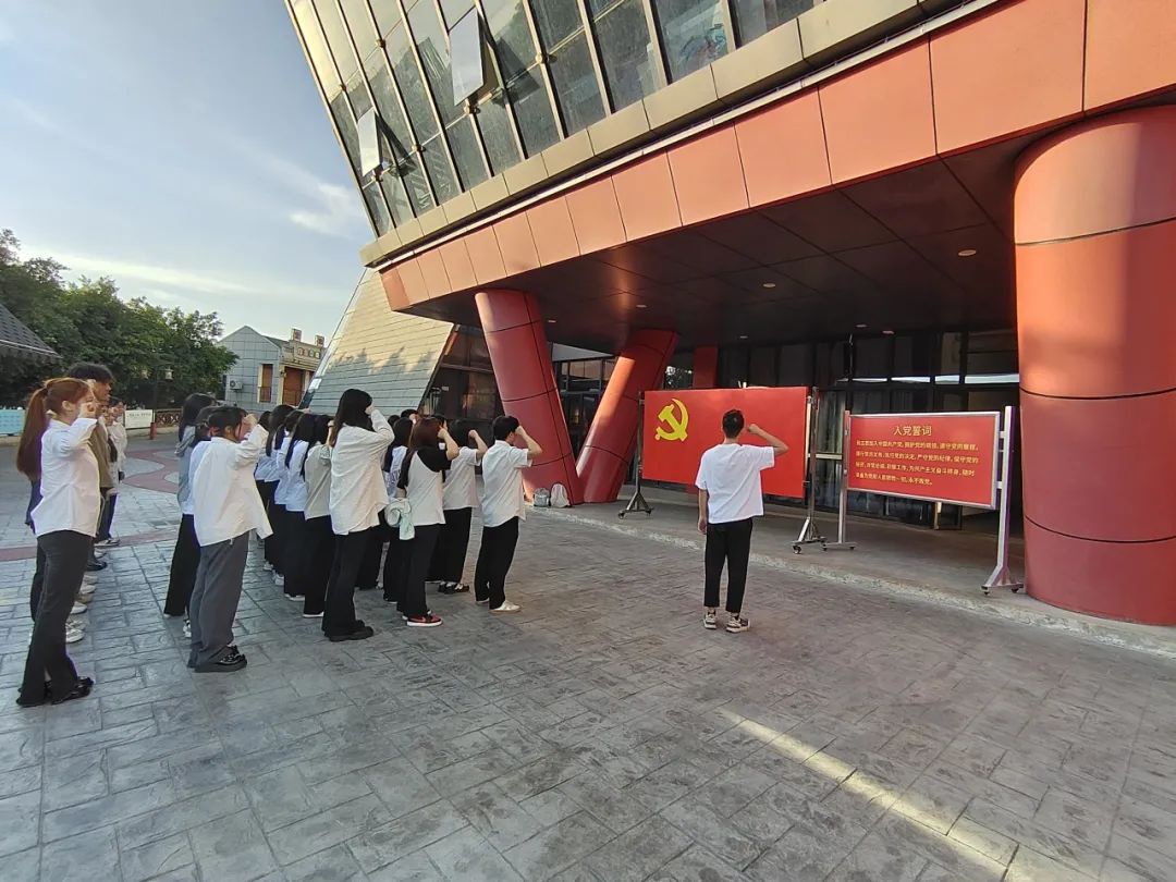 参观结束后,全体党员面向鲜红的党旗,坚定地举起右拳,重温入党誓词,更加坚定了理想信念。