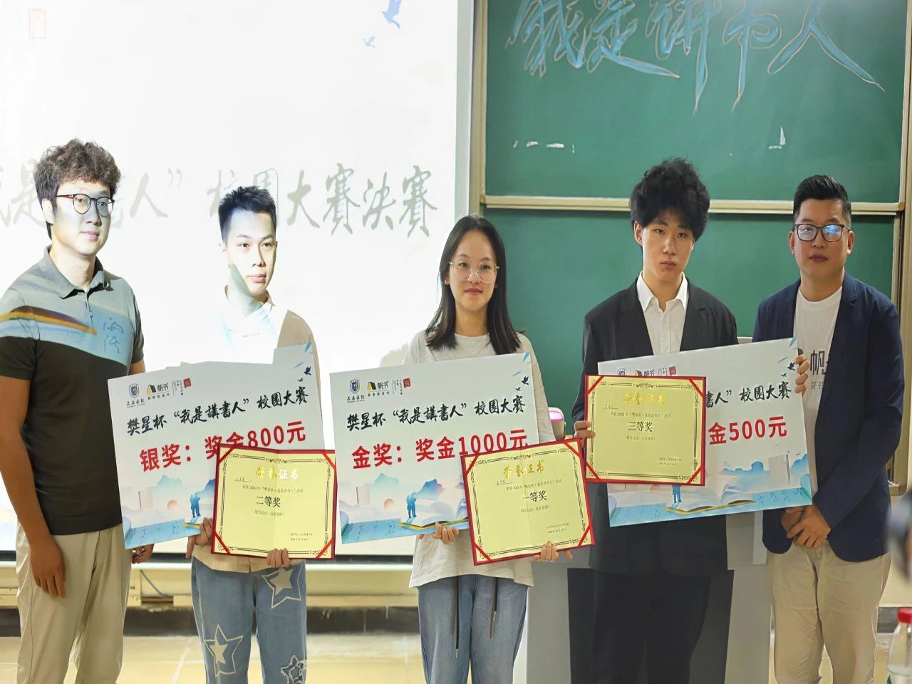 公司于12月20日下午在书新楼106教室举行“樊星杯·我是讲书人”决赛。此次活动是产品思维导向特色课程改革项目《语言与社会》系列活动赛事之一。帆书三亚运营中心负责人李帅先生、商研院负责人毕海斌先生、课程负责人殷韵声老师、公司图书馆李晓玲老师、公司团委副书记陈鸿铭老师、学业导师刘聪老师担任比赛评委。