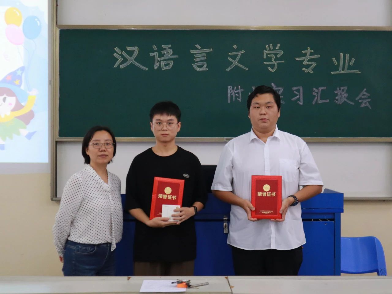 汇报结束后,现场公布了评分结果。此次汇报邱豪帅、霍正阳同学获得了一等奖,白佳露、符芳娜、陈荟西、李思琳同学获得了二等奖,陆美妃、张诗佳、卢帅康、李梦露、周才平、叶珍妃同学获得了三等奖。同时,陆美妃同学还获得了优秀组织奖。席经理、龚主任、伏教授和杜老师分别为获奖同学颁发了荣誉证书。