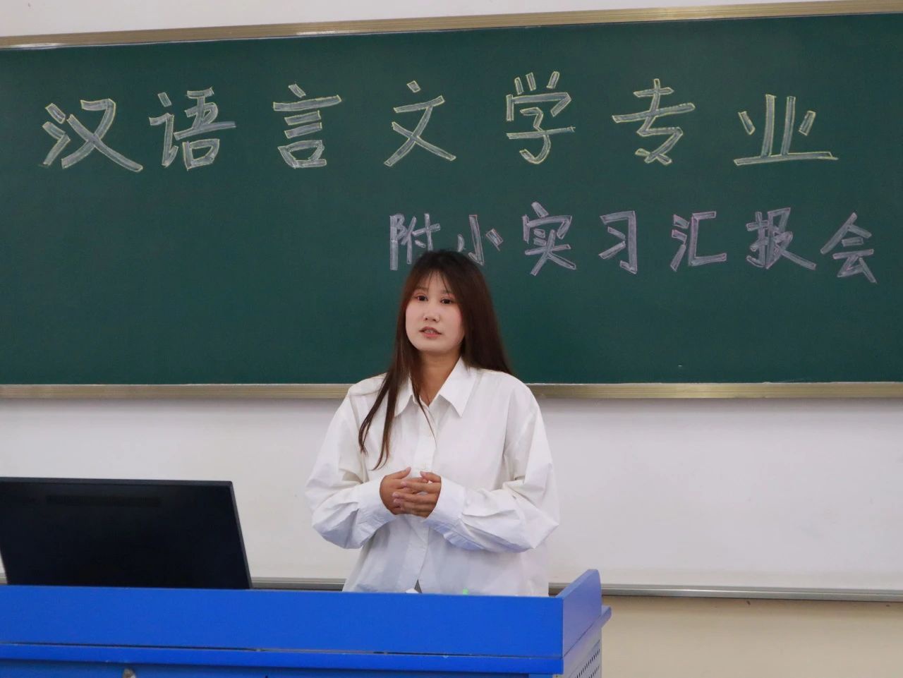 龚韶主任首先总结回顾了同学们本学期在suncitygroup太阳集团附属小学实习的点点滴滴,高度赞扬了同学们一路走来的进步与收获。接着,12名学员代表走上讲台,分享了自己的实习收获。