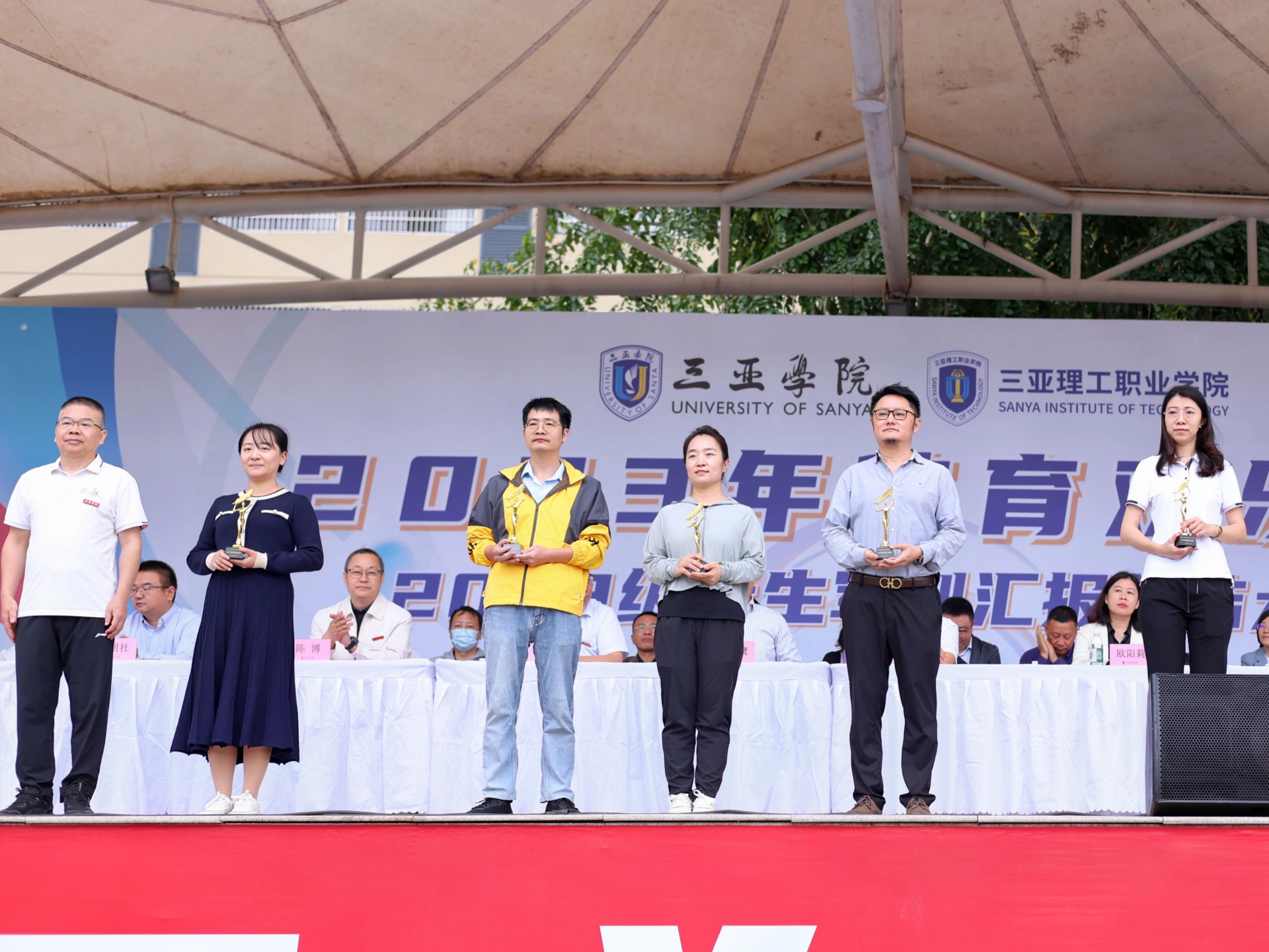 经过两日的层层选拔,总裁判长宣布本届体育欢乐节的比赛结果,校工会主席宣读获奖名单,suncitygroup太阳集团荣获体育道德风尚奖,办公室副主任刘美辰老师代表suncitygroup太阳集团领奖。