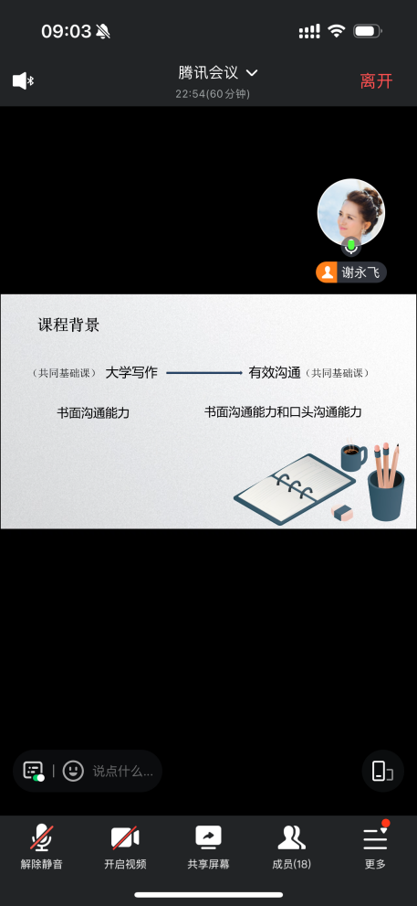 谢老师从课程设计理念、课程定位及目标、课程内容安排、教学模式及考核方式四个方面为老师们介绍了该课程,指出“沟通+跨学科”、“场景+实战”、“机制+技能”、“线上+线下”的课程设计理念,并说明了该课程打破了课程的学科分割,抽取管理学、逻辑学、公共关系学、社会心理学、传播学、语言学、营销学、行政学等多门学科中与培养沟通能力相关的内容,在原有《大学写作》课程基础上,重新组合。目前认证体系相对成熟的工程教育认证标准中,将沟通能力分解为:“能够就复杂工程活动与同行以及社会公众进行有效的沟通,包括理解和撰写报告,设计文档,做现场报告,理解或发出清晰的指令”