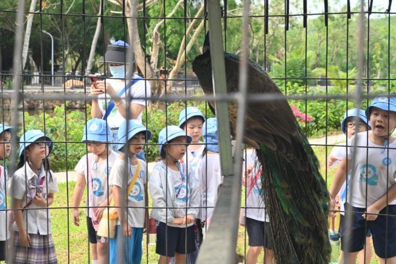 随后,师生们来到了校园内的生态动物园区。在这里,他们看到了美丽的孔雀,还有优雅的黑天鹅,自由的小白鸭、小黄鸭在水中悠闲地游弋。孩子们兴奋地欢呼着,和每个小动物热情地打招呼。与生态动物园区交错的是园林设计展,在这里,小朋友们见到了各式各样的建筑,各具特色的雕塑。在惊叹之余,许多小朋友争先恐后地发言:“我长大以后要成为一名建筑师!”在这一站,小朋友们收获了与小动物和谐相处的真挚友情和充满激情的梦想!